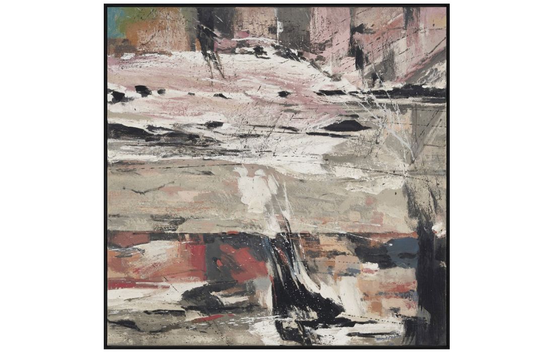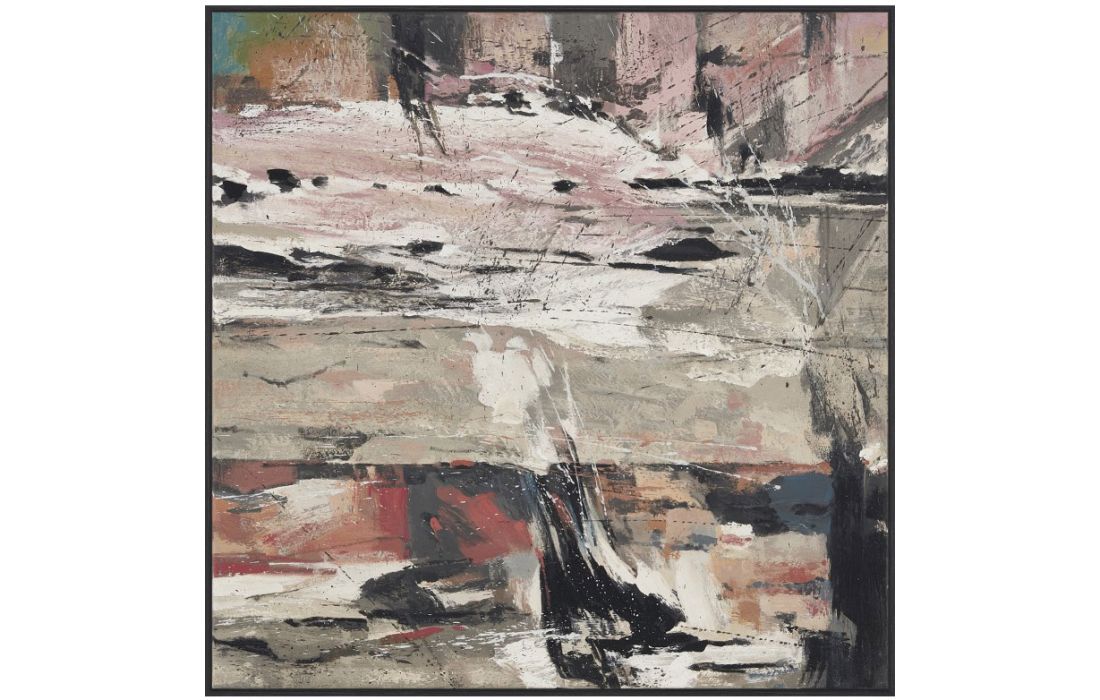 Original abstract painting by the author Diana Fuertes on canvas or with wooden frame, options in white, black, light gray and dark gray