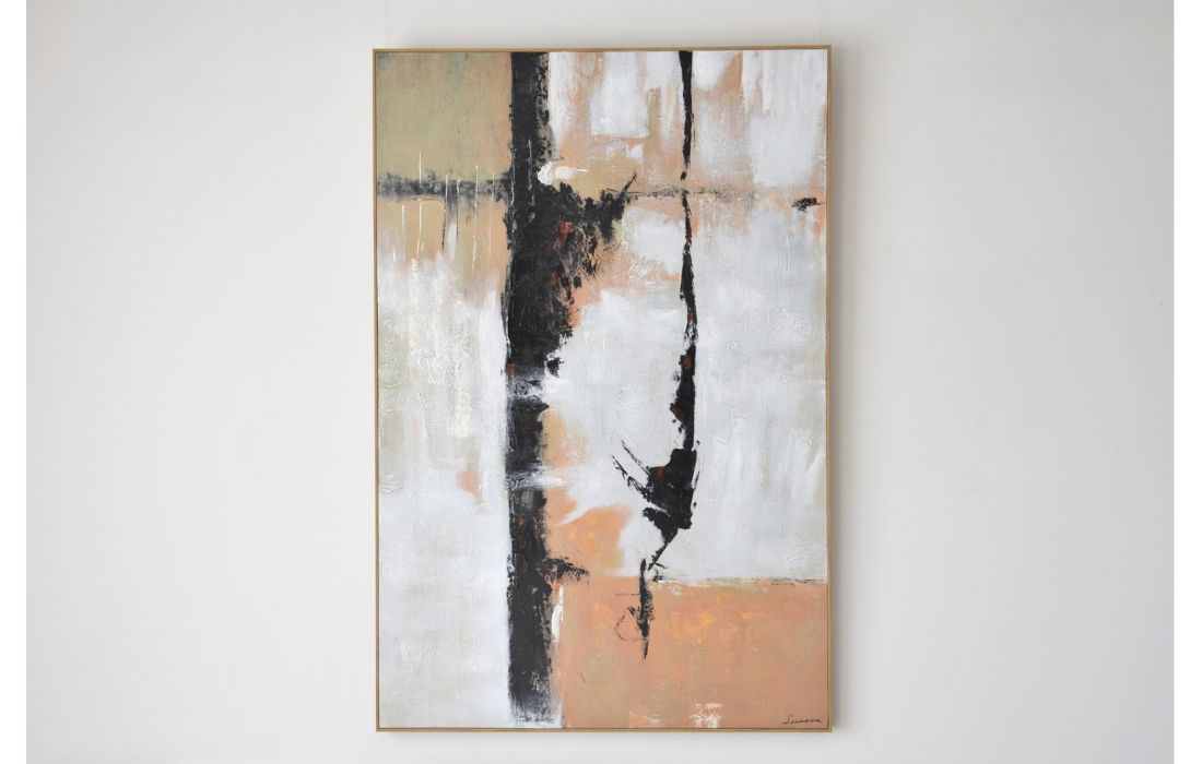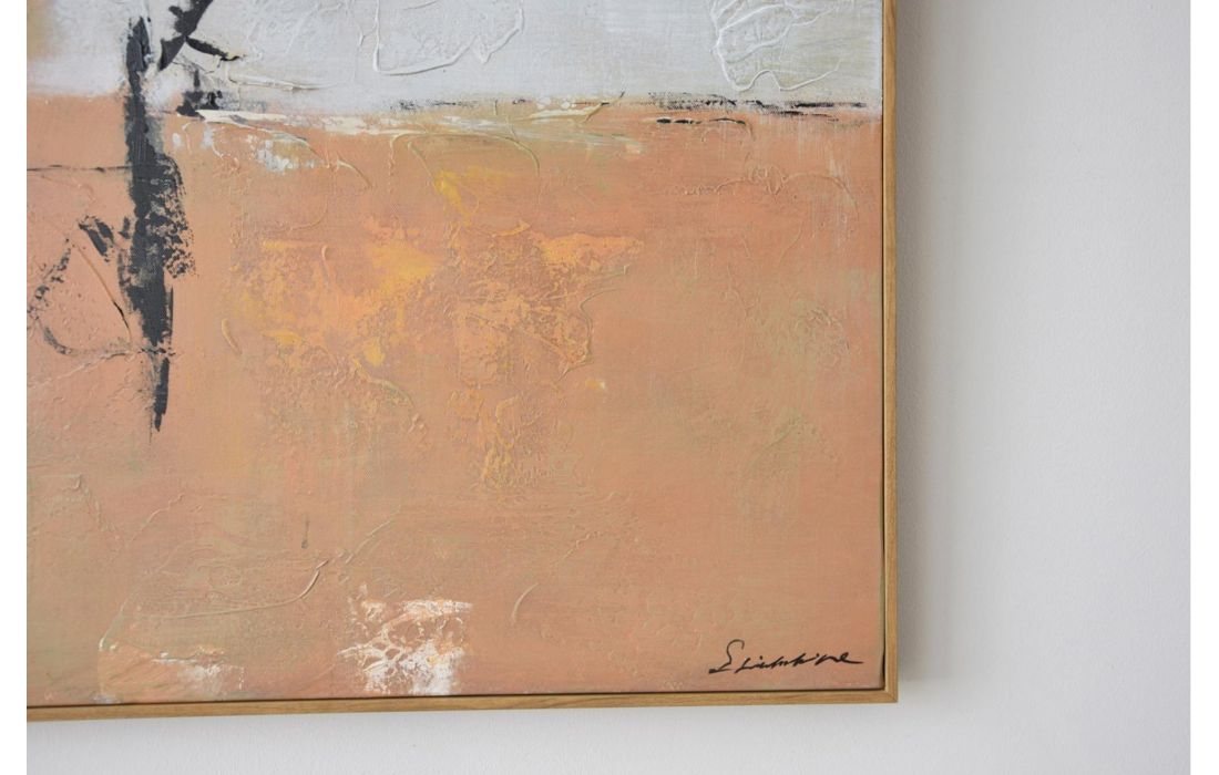 Abstract frame painted by hand with acrylic paint on canvas, in shades of green, white, orange and black. Frame with wood color finishRecipient :