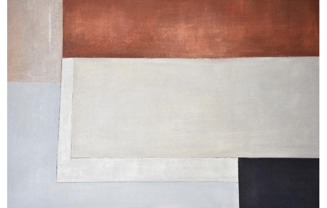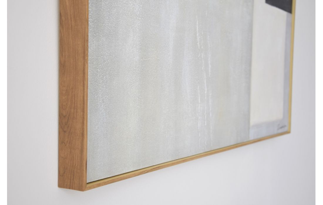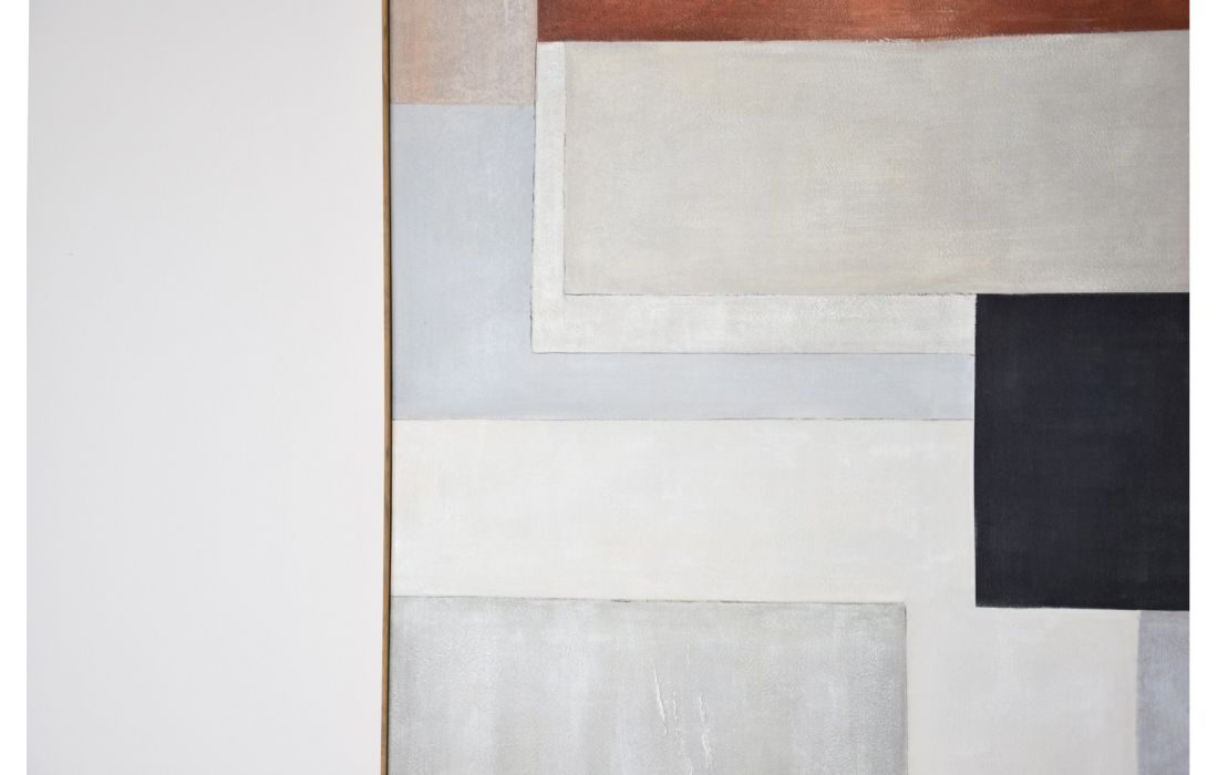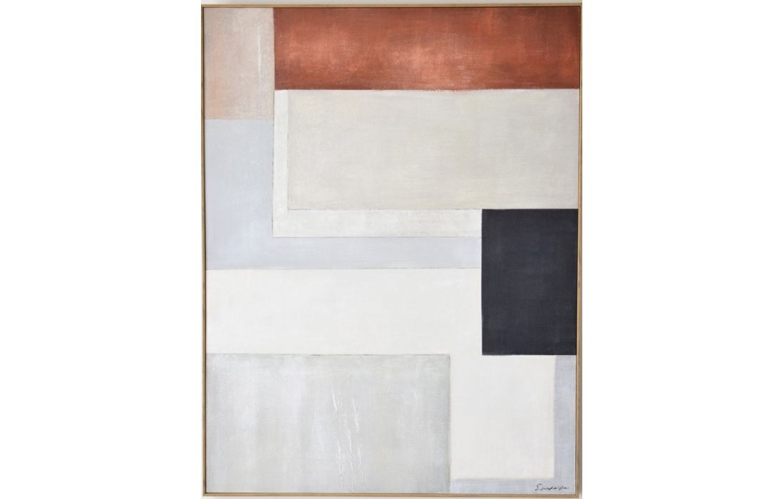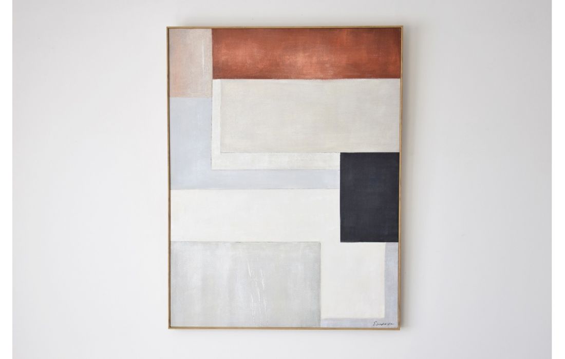 Abstract frame painted by hand with acrylic paint on canvas, in shades of tile, cream grey, white and black. Frame with wood color finishRecipient :
