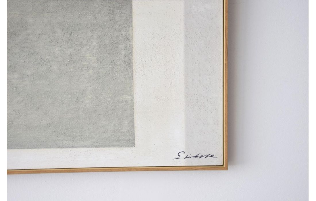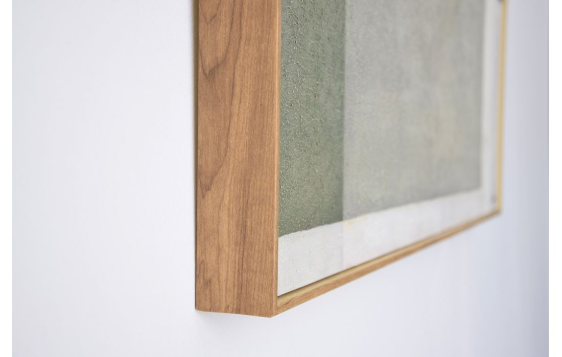 Abstract frame painted by hand with acrylic paint on canvas, in shades of green, cream, grey, white and black. Frame with wood color finishRecipient :