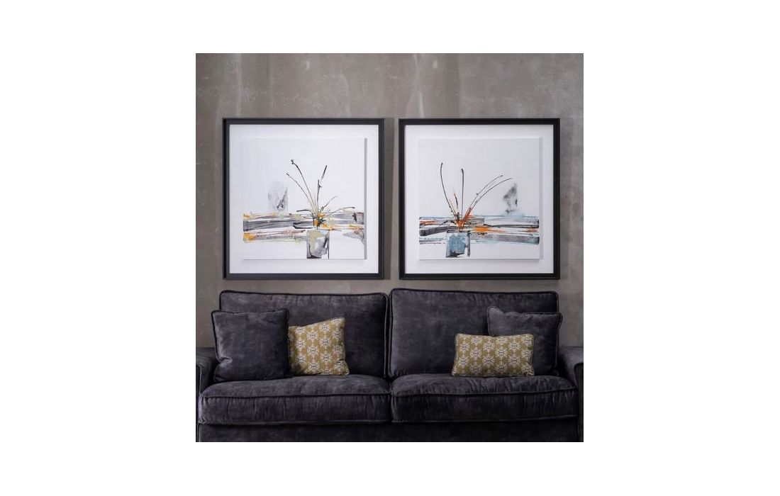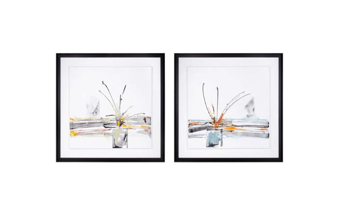 Set of 2 hand-painted canvas prints with ayous wood frame