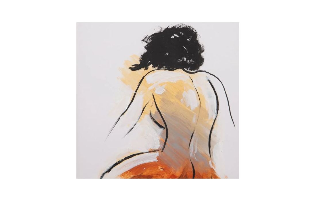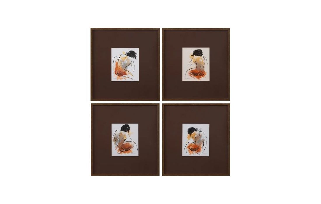 Set of 4 hand-painted paintings with pine wood frame