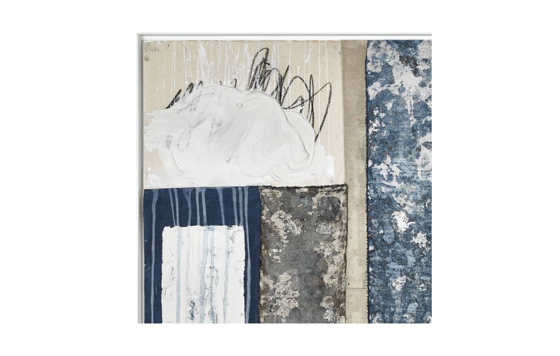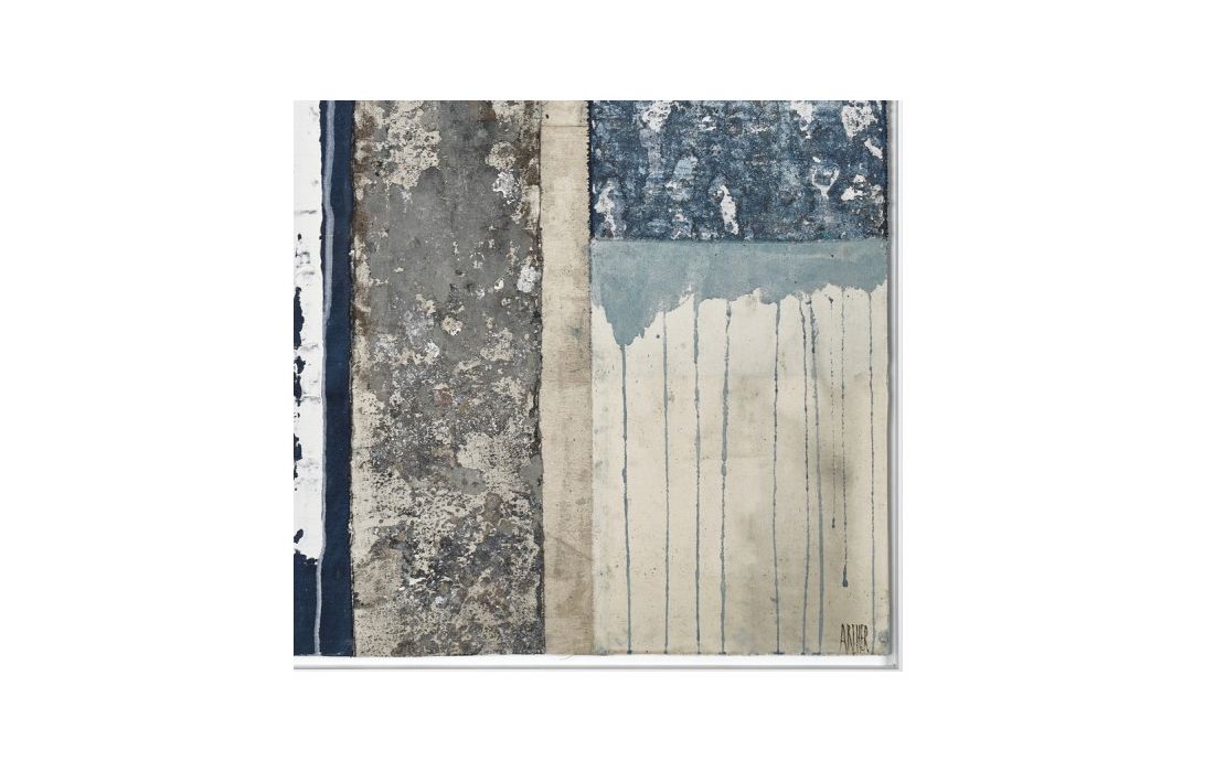 Original picture by author Robert Archer, abstract painting with white wooden frame.