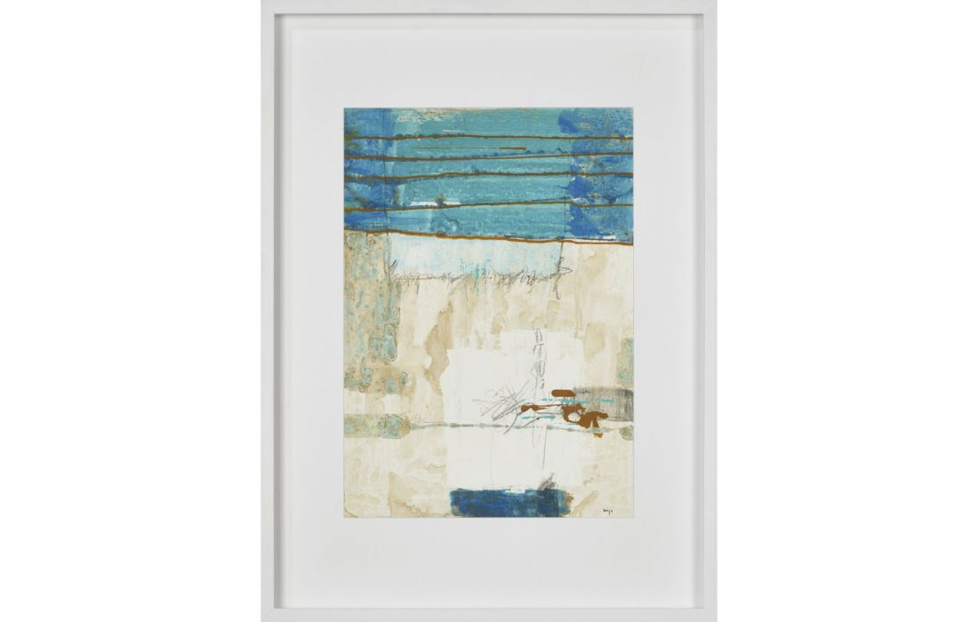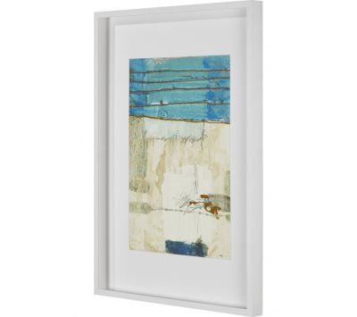 Original painting by author Diego Serra, abstract painting with glass and white lacquered frame.
