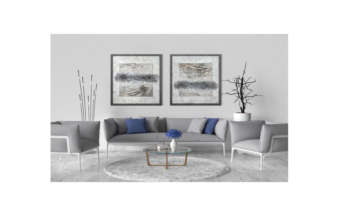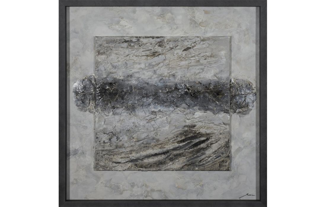 Original painting by the author Vicente Soriano, abstract painting in wood with frame in gray stone