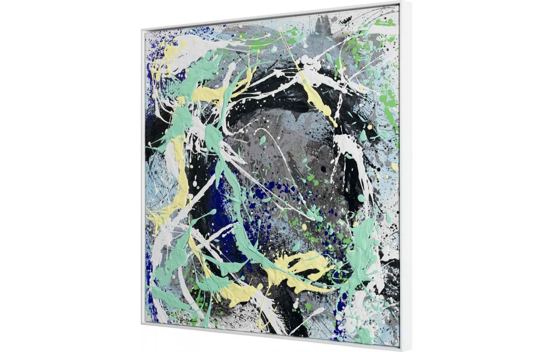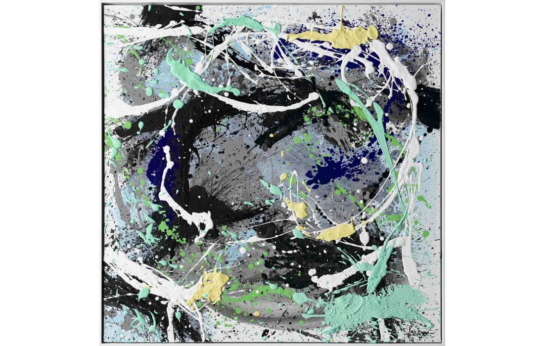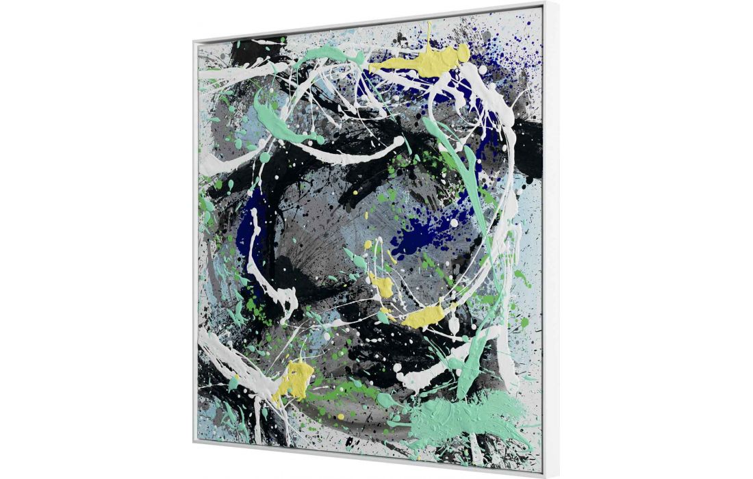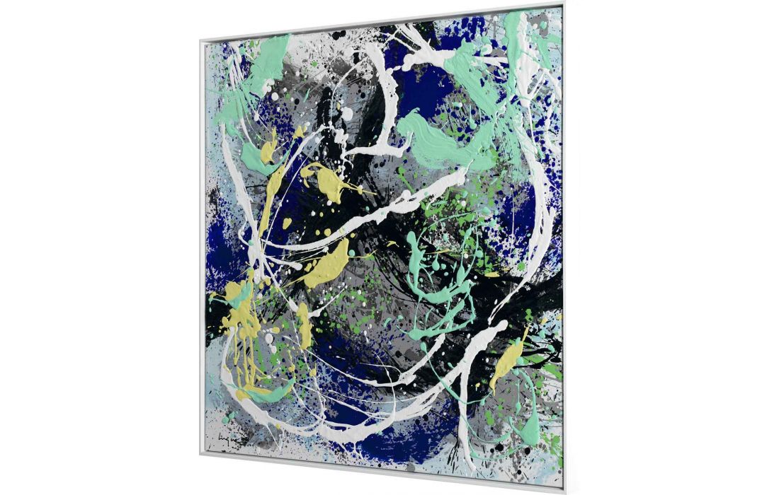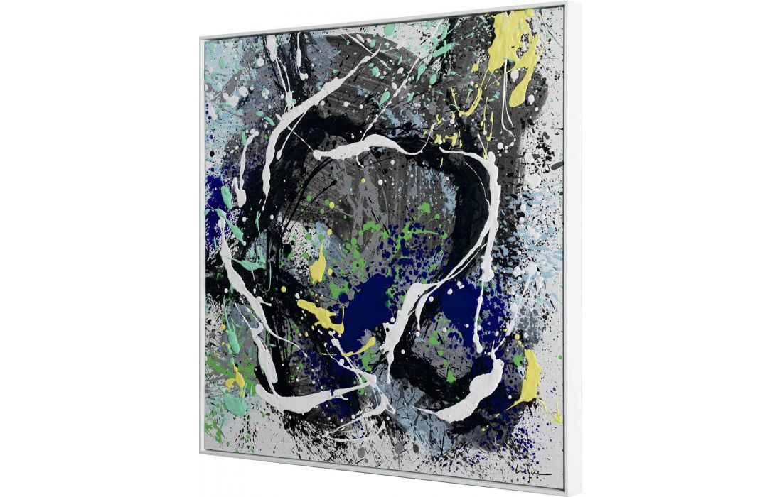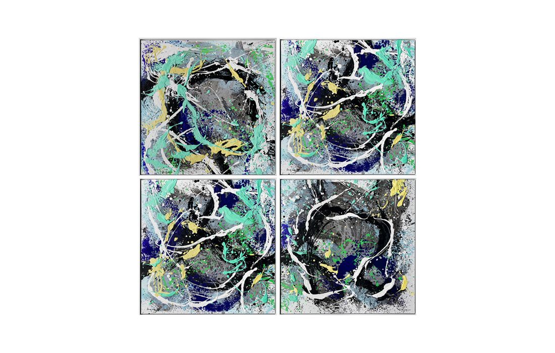 Set of 4 paintings, original painting by the author César Luque, abstract painting on canvas with frame painted white.