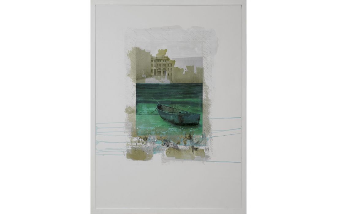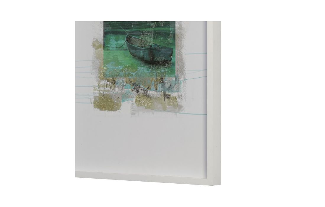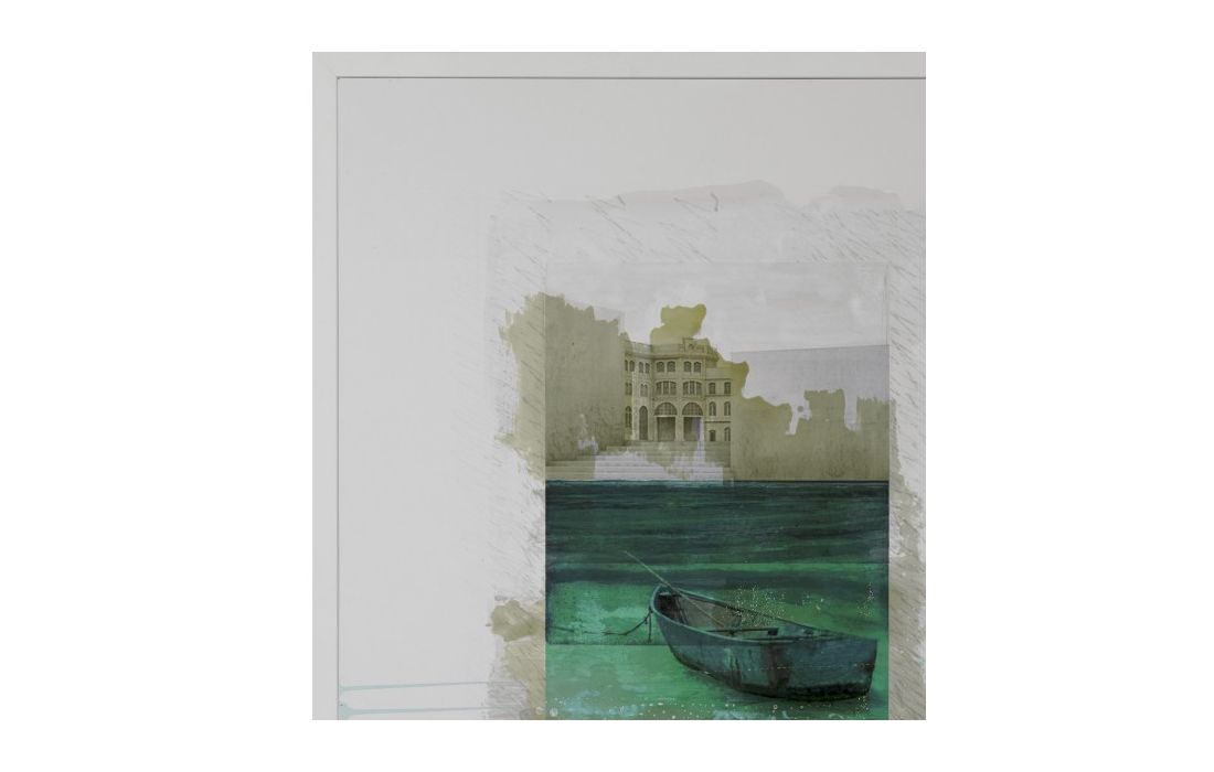 Frame with original painting by the author Diego Serra with white lacquered frame with glass.