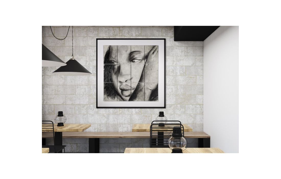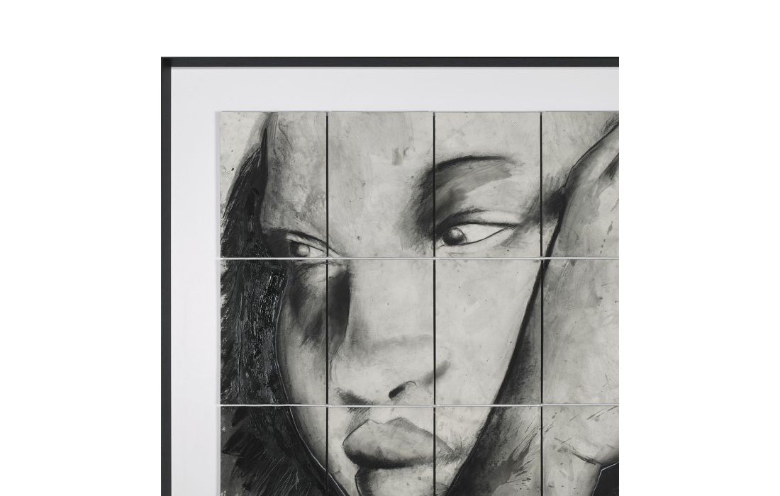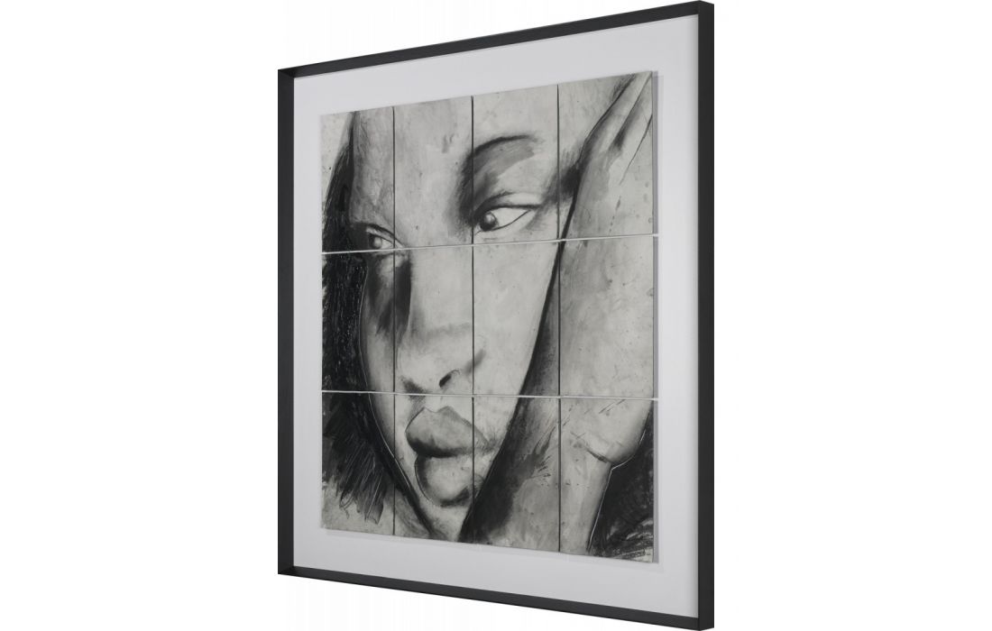 Frame with original painting by author Robert Archer with frame painted black.