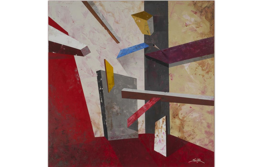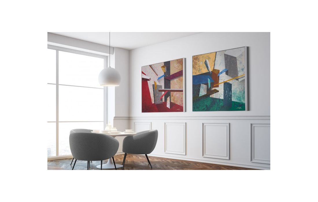 Original painting by author David Siver, abstract painting on canvas, various options with frame painted white, black, beech wood and oak.