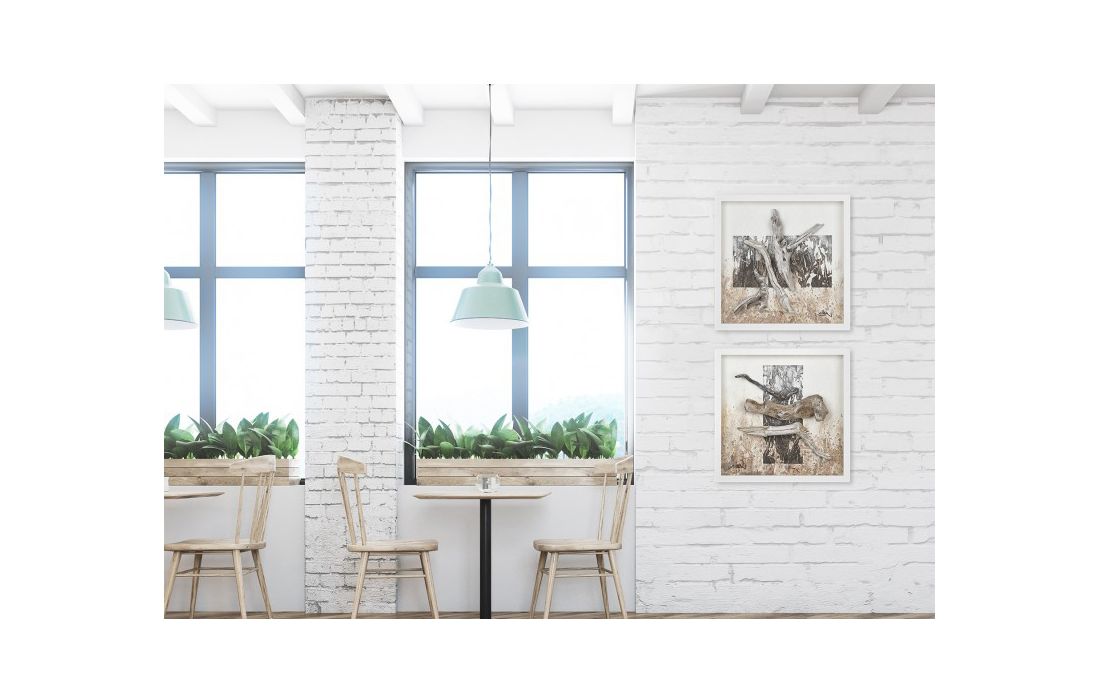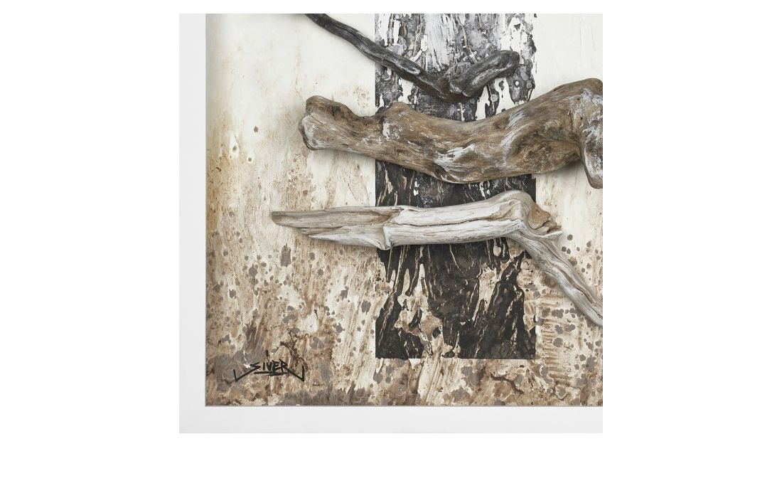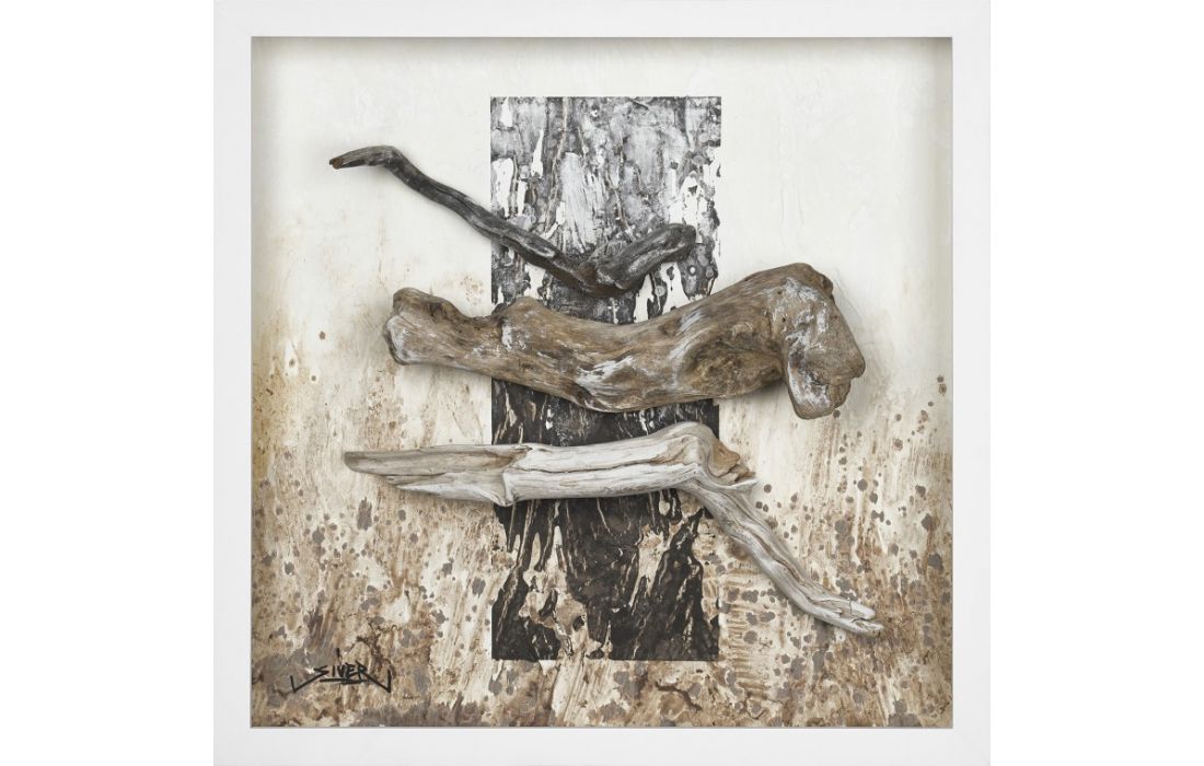 Picture with mixed original painting / sculpture by author David Siver with white lacquered frame.