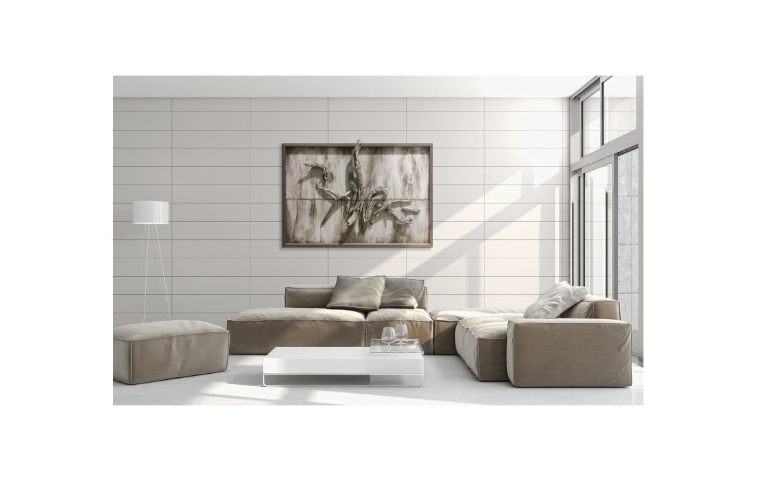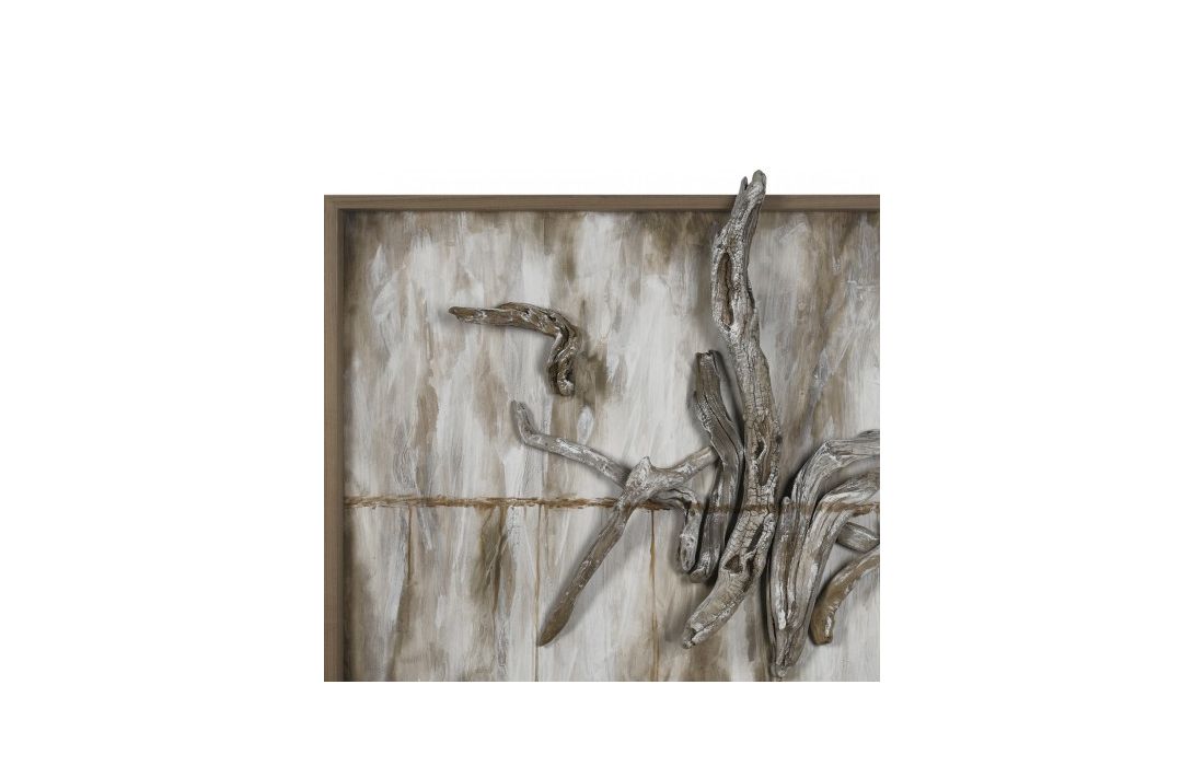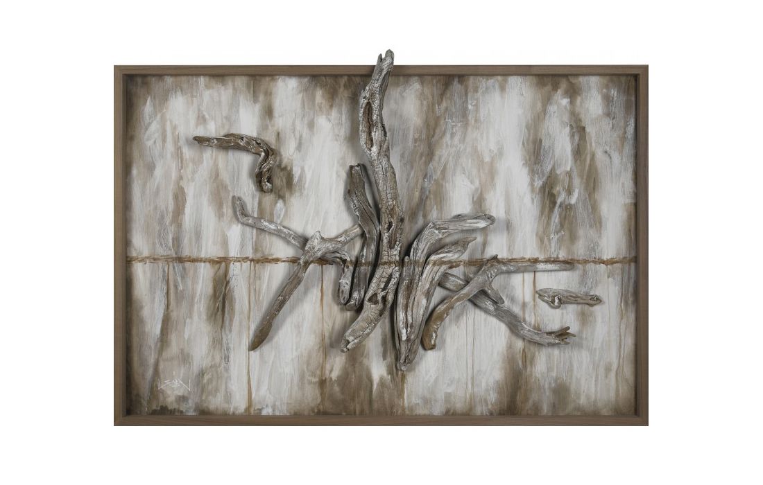 Picture with mixed original painting / sculpture by author David Siver with frame in American walnut wood.