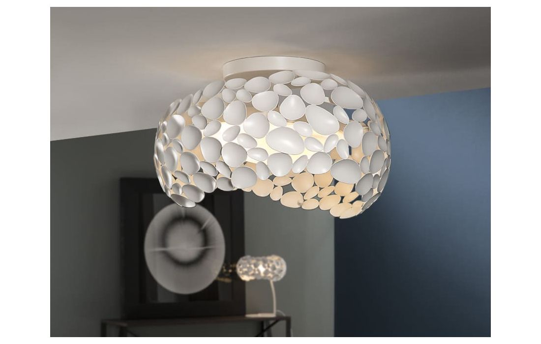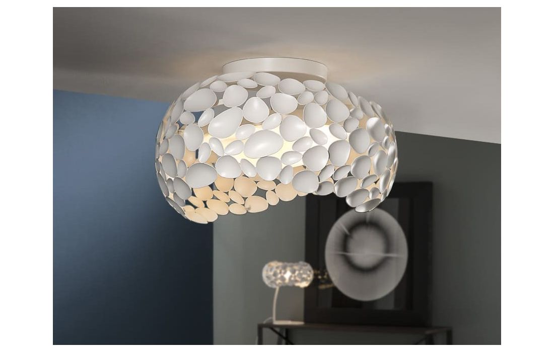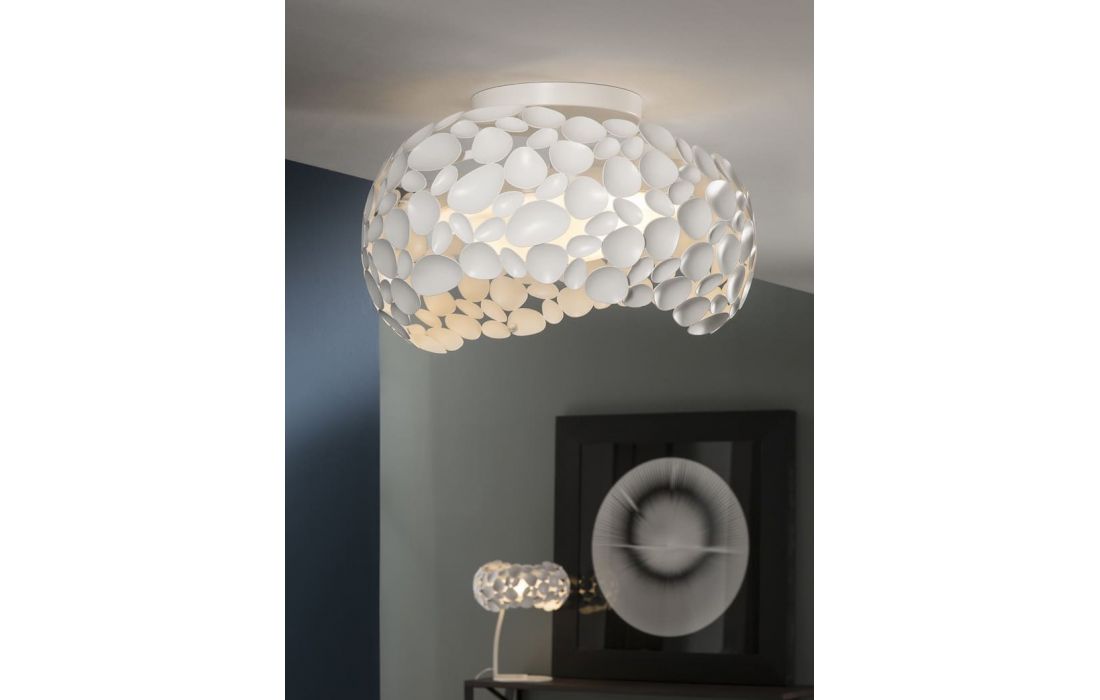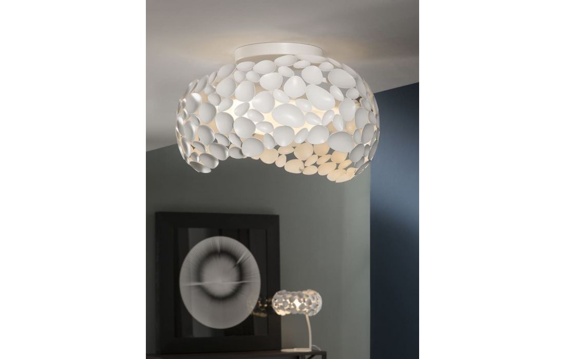 Ceiling lamp with 5 LED lights, made of metal with a matte white lacquer finish. Internal acrylic diffuser.