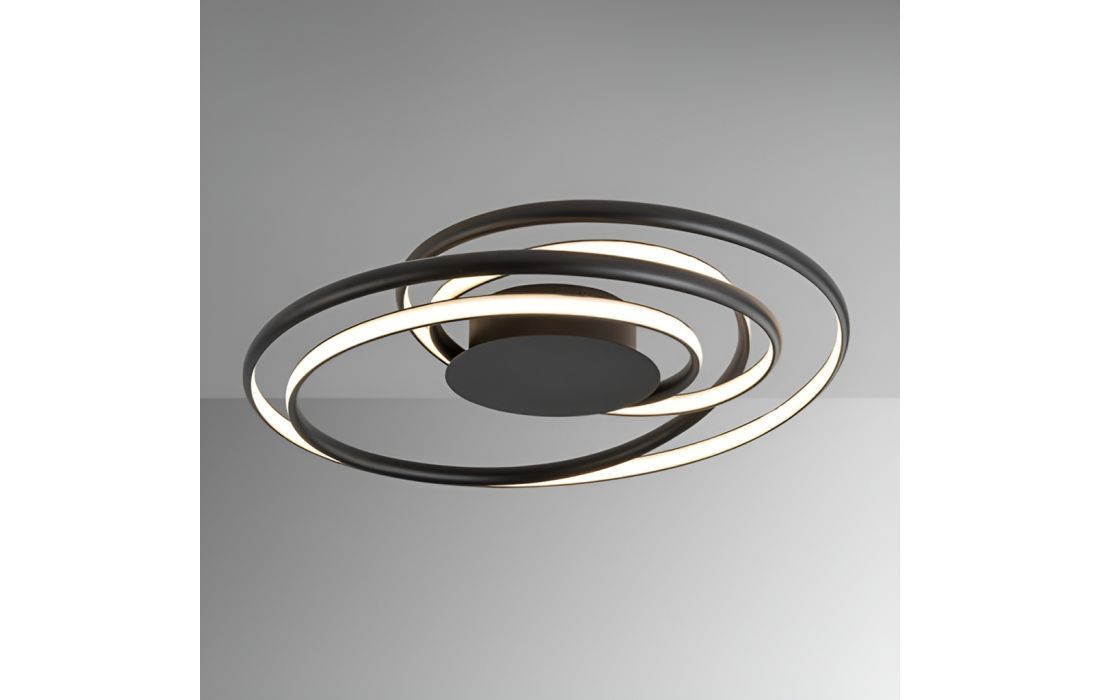 Ceiling lamp in metal and aluminum, sandblasted matte black finish. Opal silicone diffuser.