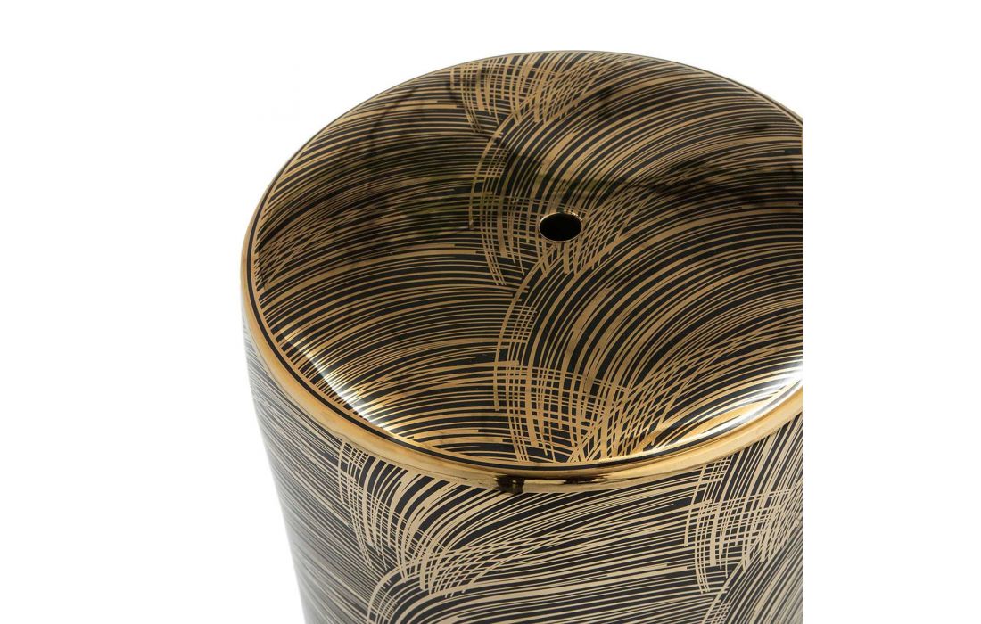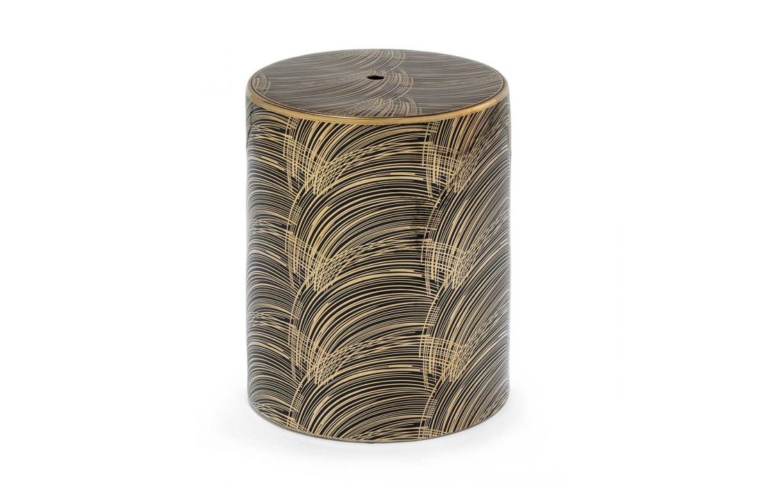 Decorative puff in golden/ black ceramic.