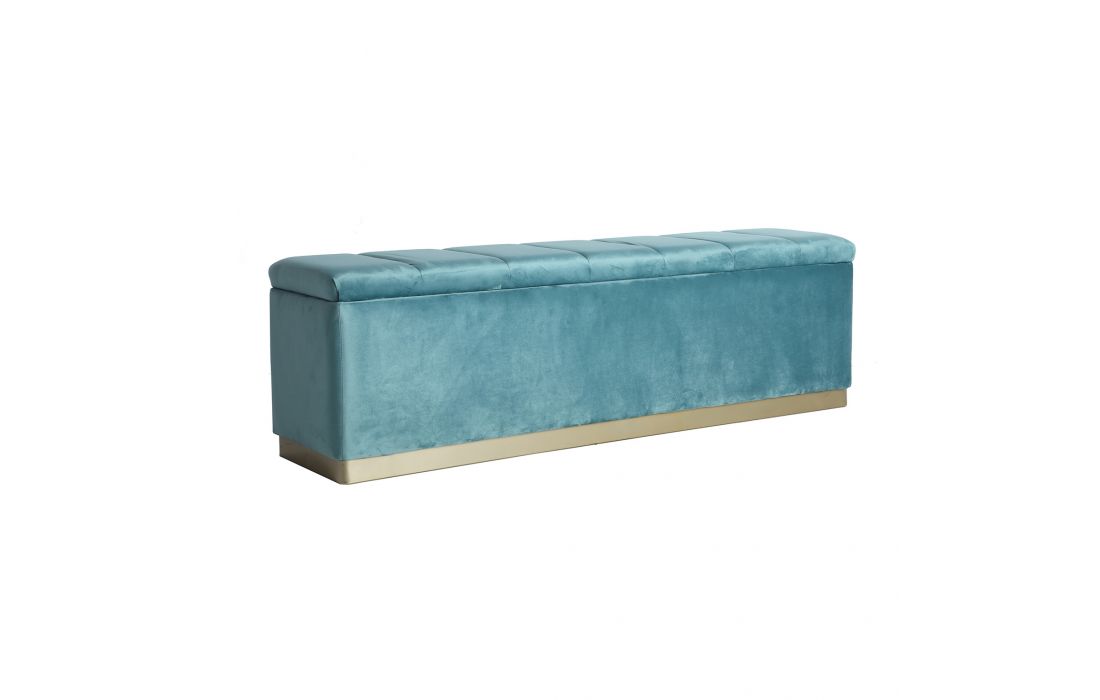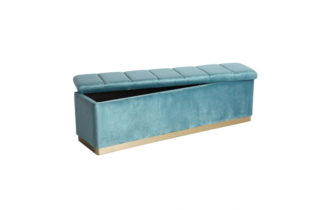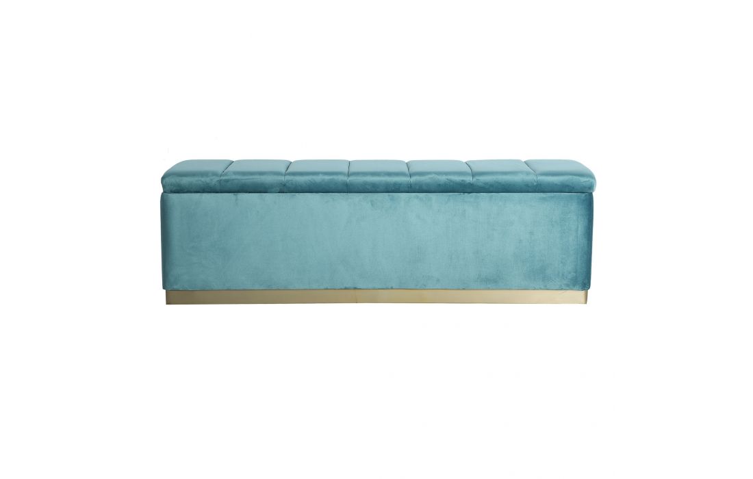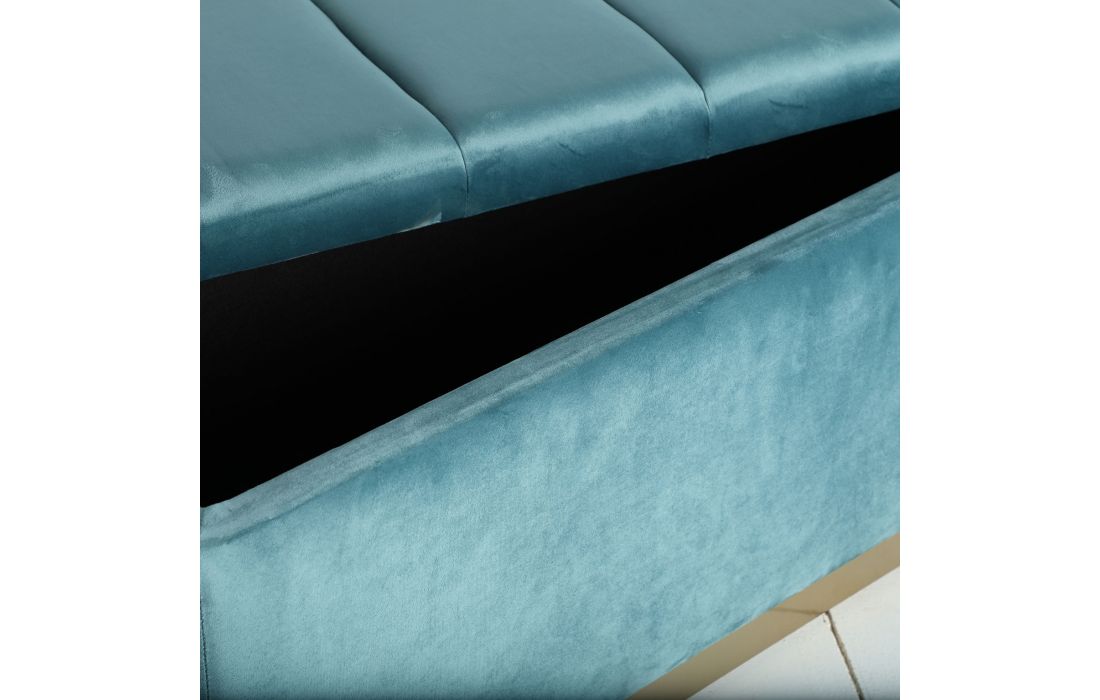 Stool in turquoise blue velvet fabric and gold colored steel, with storageRecipient :