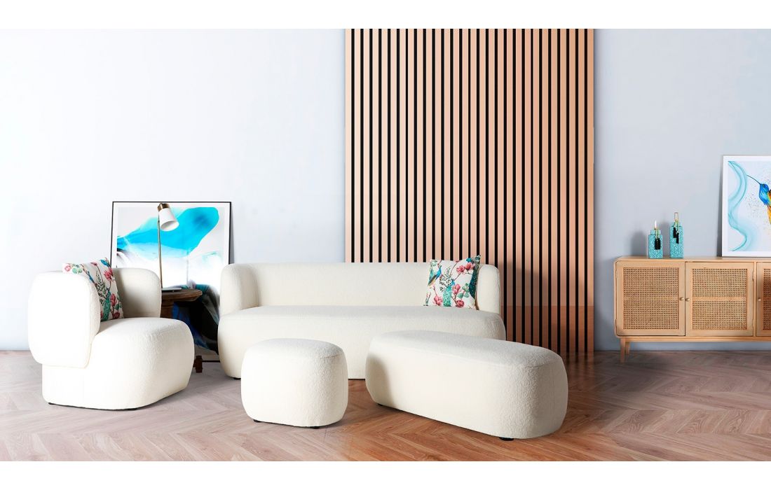 Stool made of fir wood and bouclé cotton upholstery with a rounded finish.Recipient :