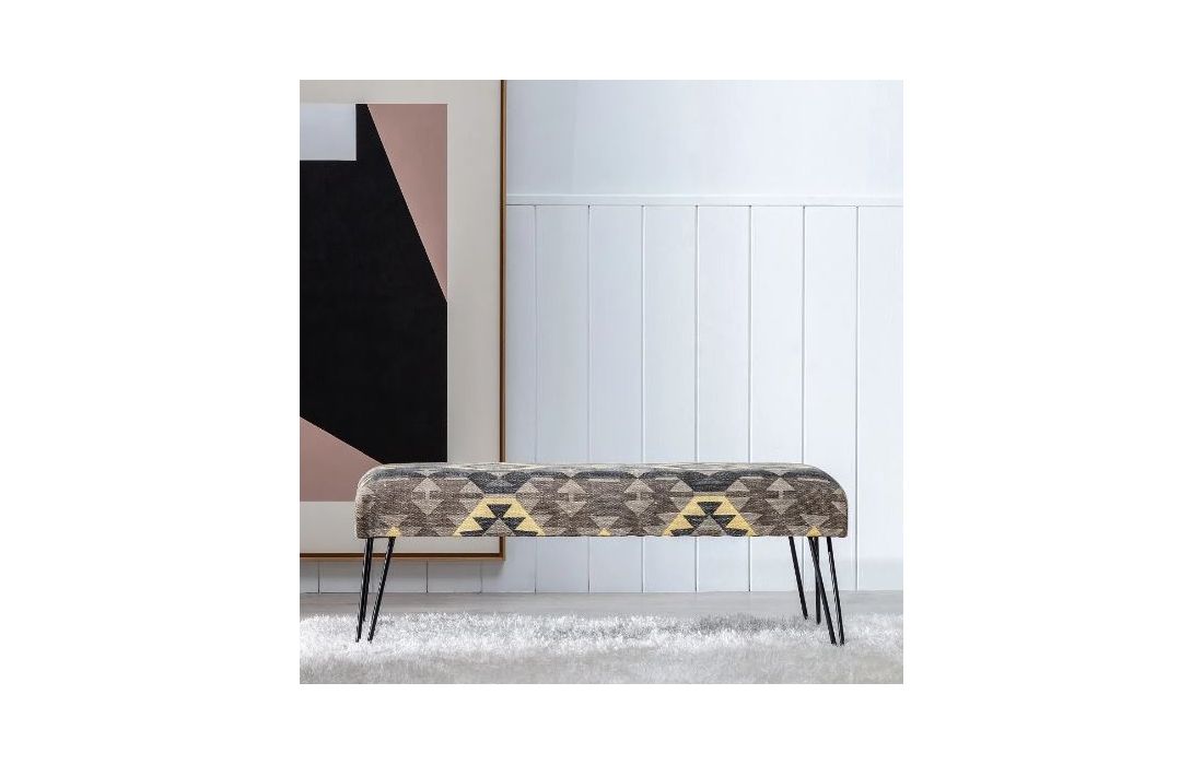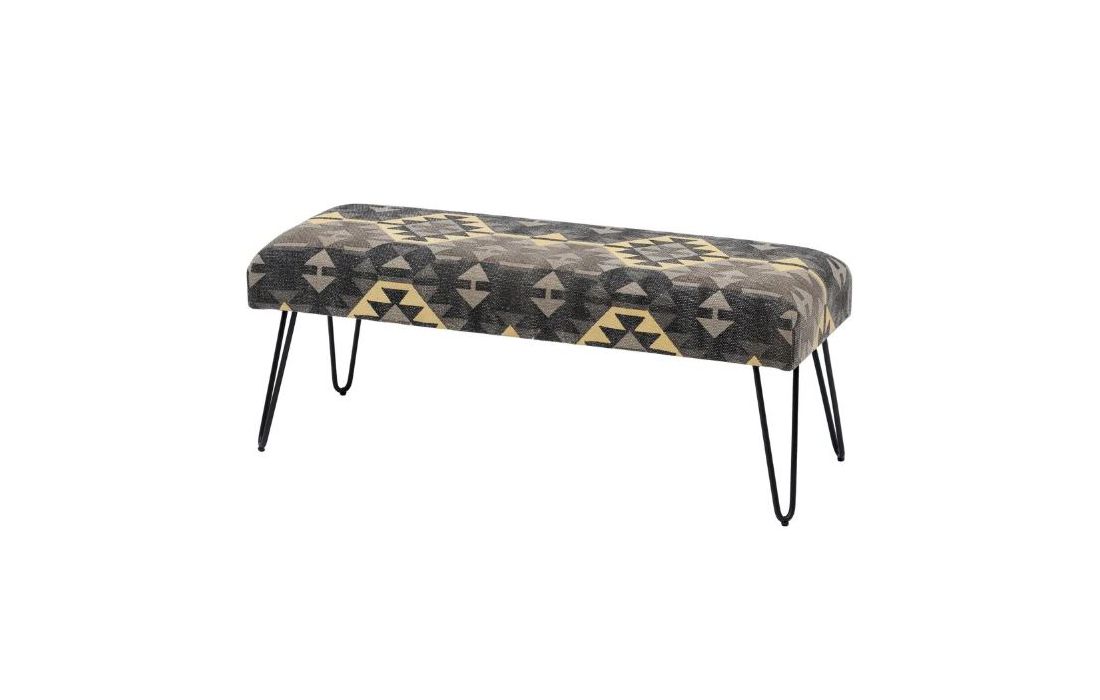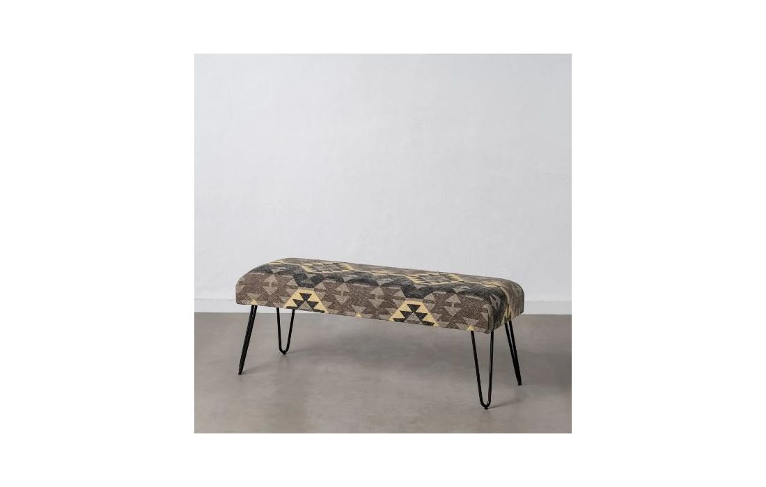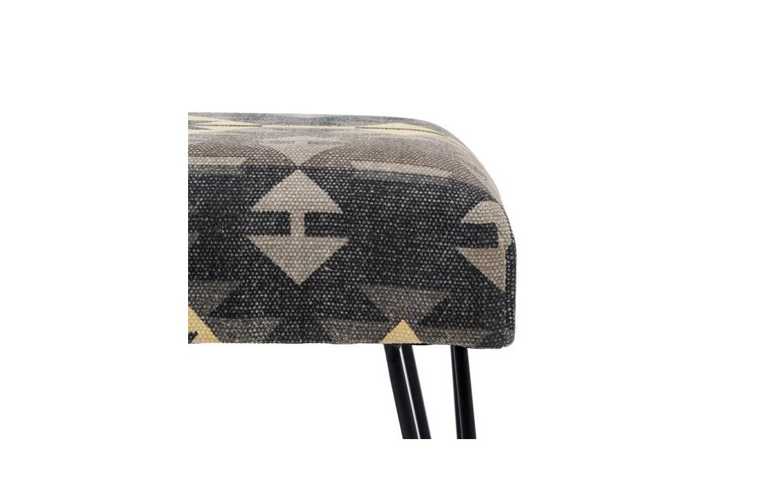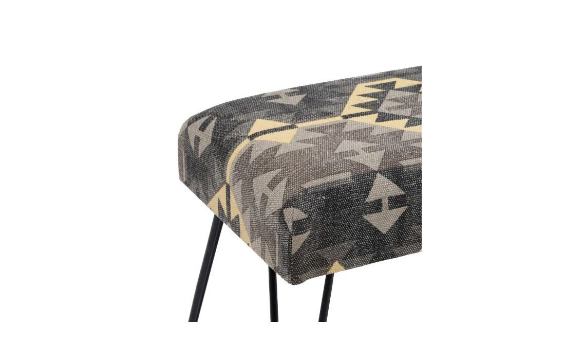 Stool with hand-painted 100% cotton fabric upholstery and black metal legs