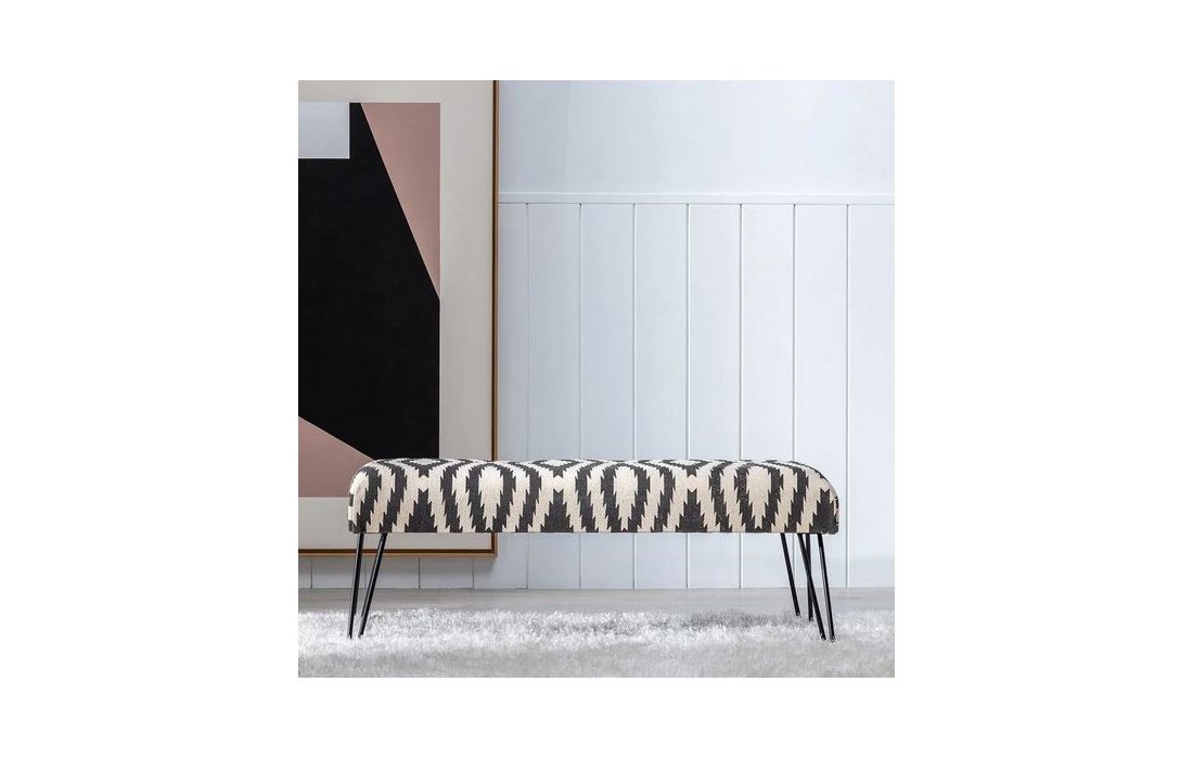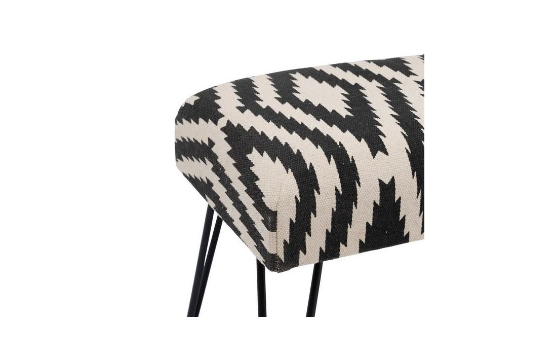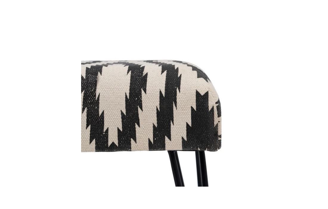 Stool with upholstery in 100% hand-painted cotton fabric in black/white and black metal legs