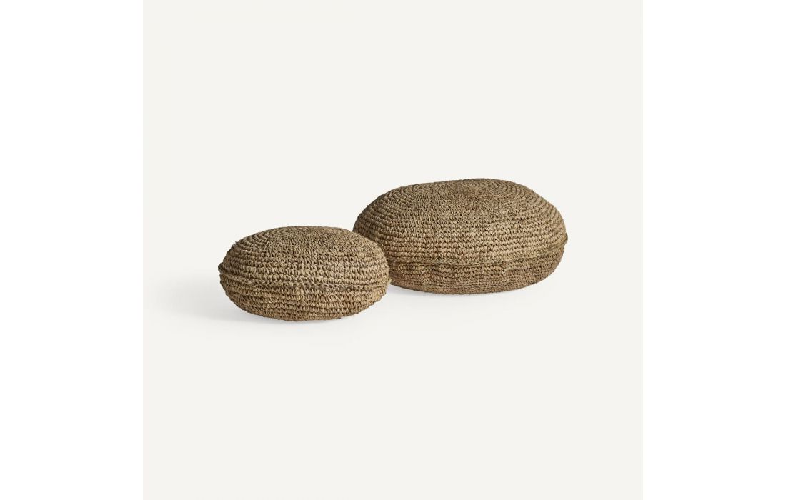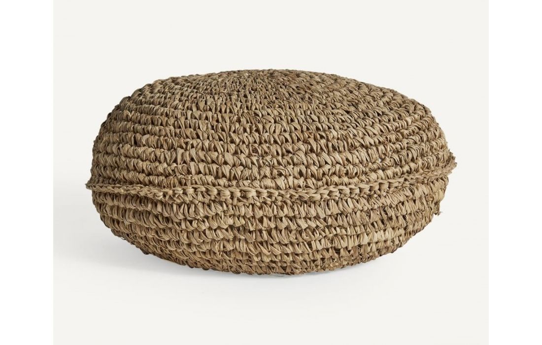 Ethnic style puff made of natural fiber in brown color