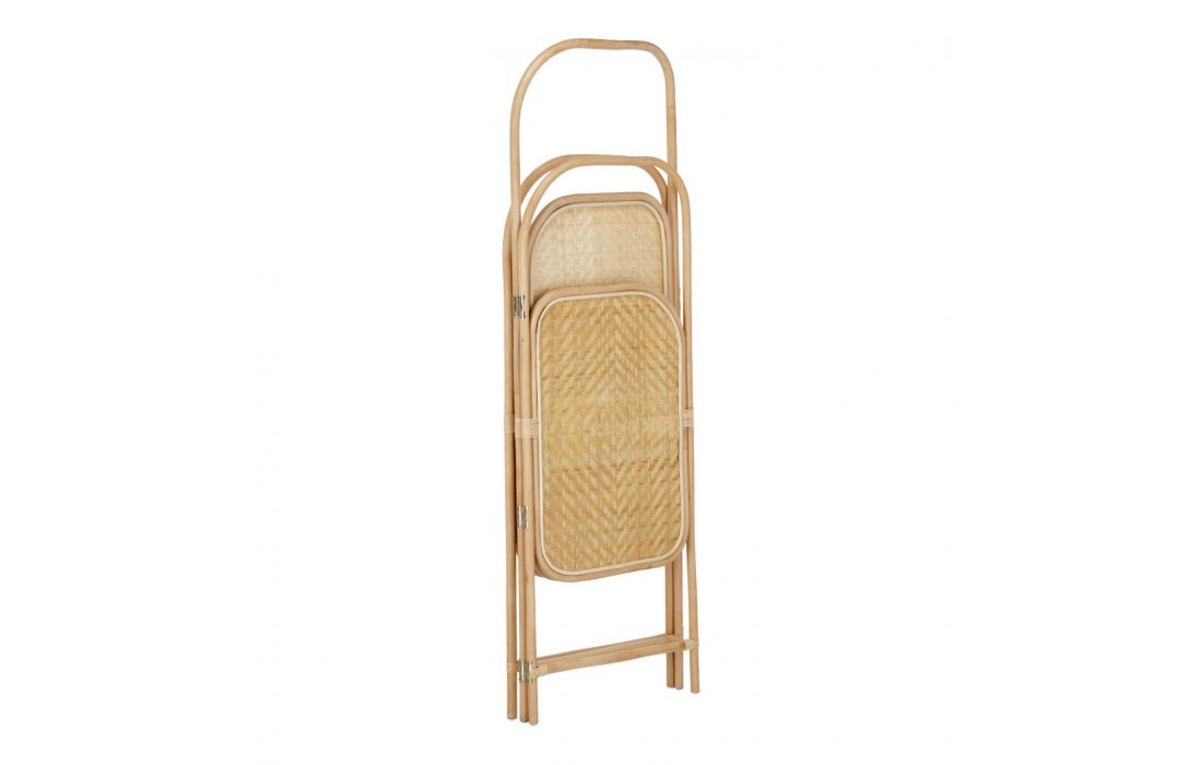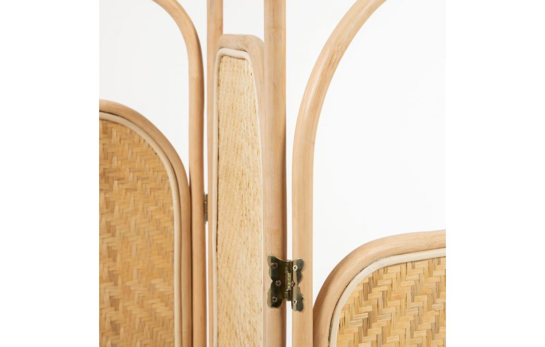 Screen made of ratan with braided ratan mesh on the front. The rattan is hand-bent to make the structure and hand-braided.