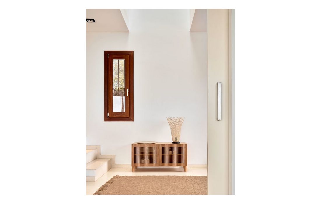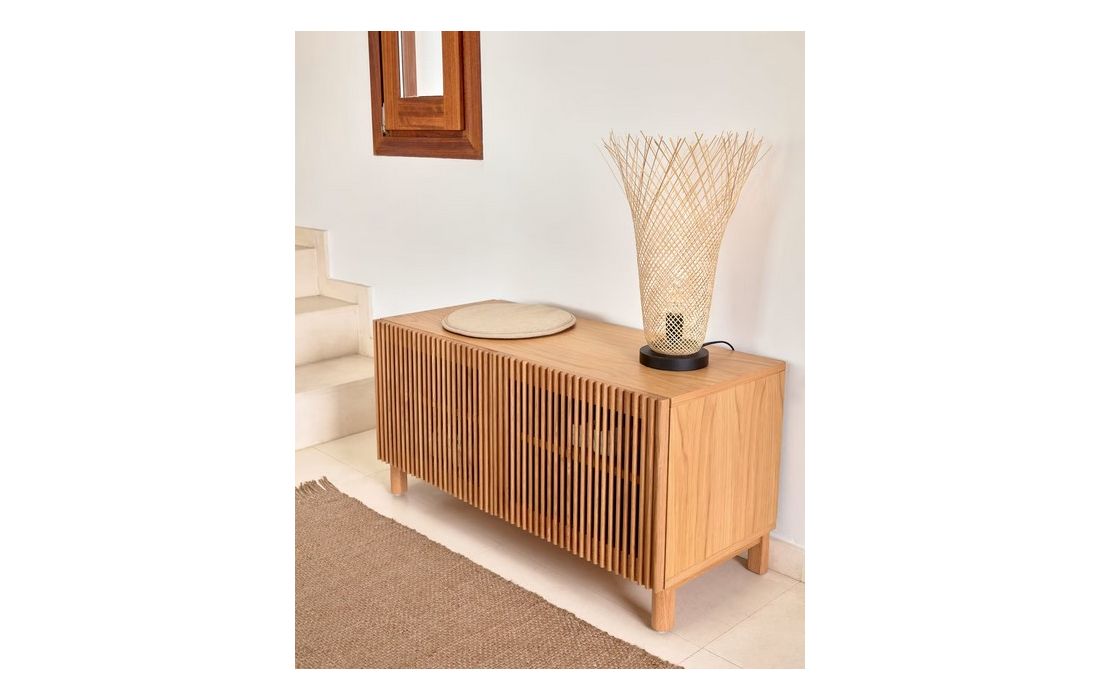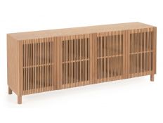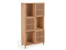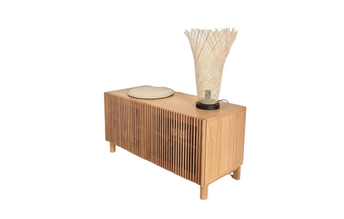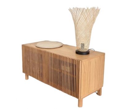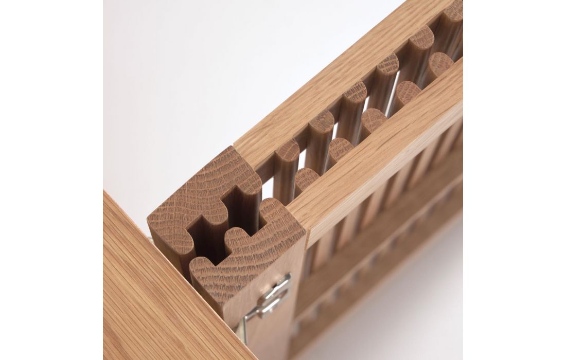 Shoe cabinet with 2 slatted doors in solid oak woodRecipient :