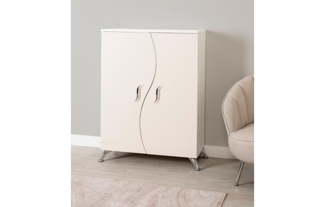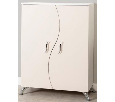 Shoe rack with 2 doors in pine and MDF with metal handles and feet.Recipient :