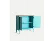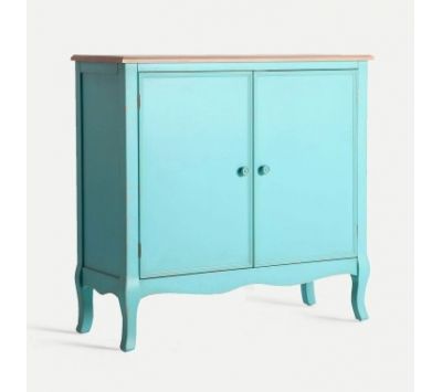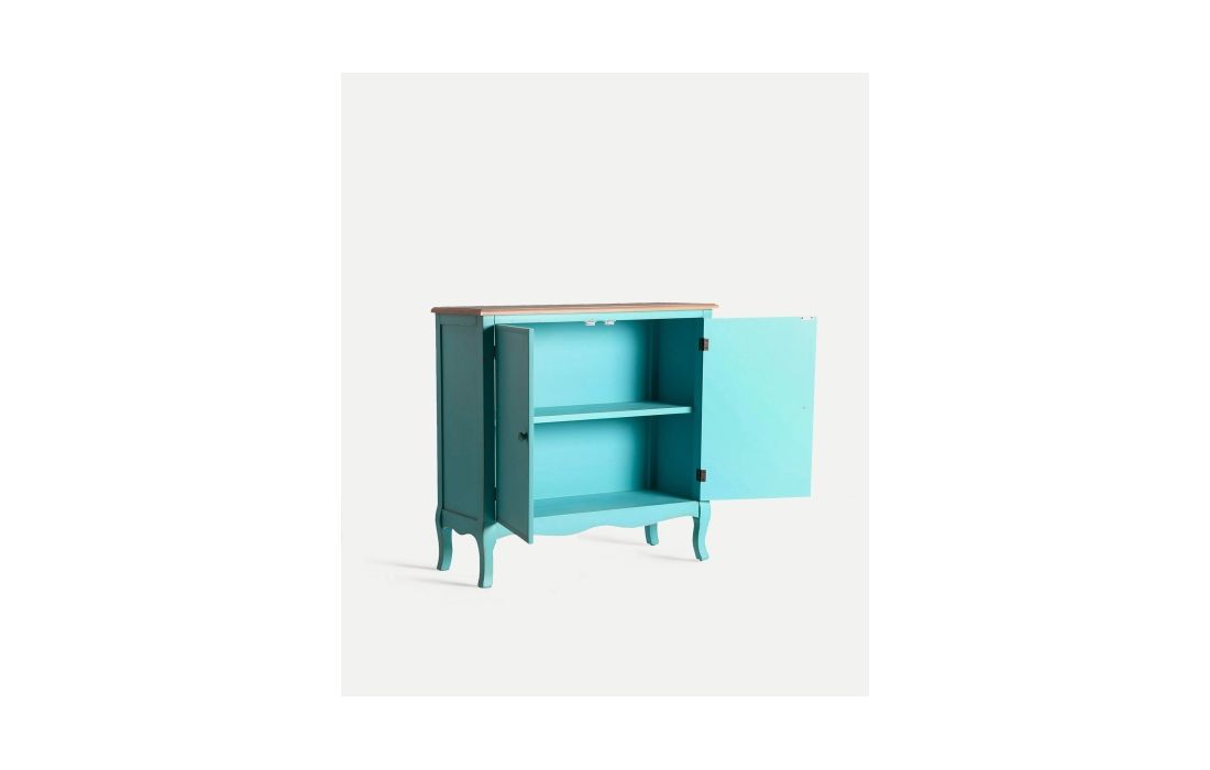 Blue shoe rack in fir wood with two doors and natural MDF wood topRecipient :