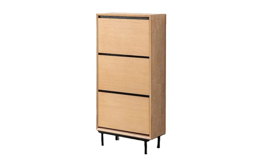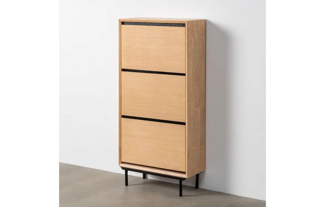Shoe rack made of rubber wood, MDF, and metal legs, with 3 drawers for storageRecipient :