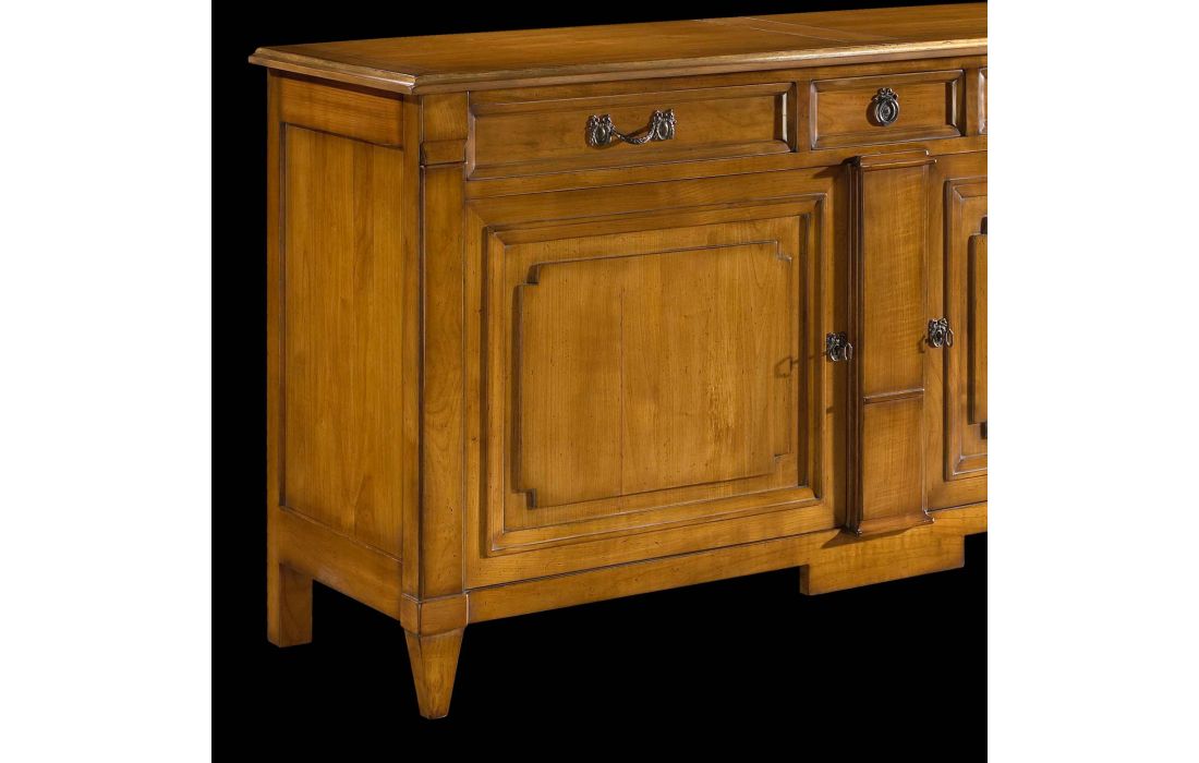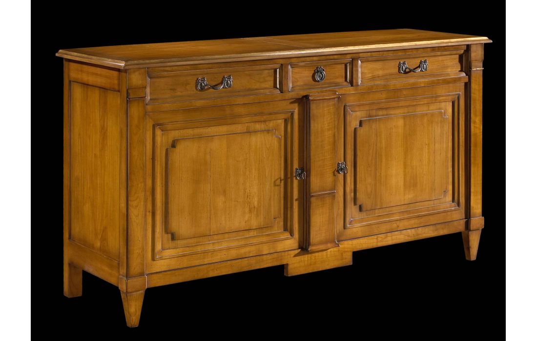 Sideboard with 2 doors and 3 drawers, Provencal design and detail in gold leaf, with the possibility of several finishes.