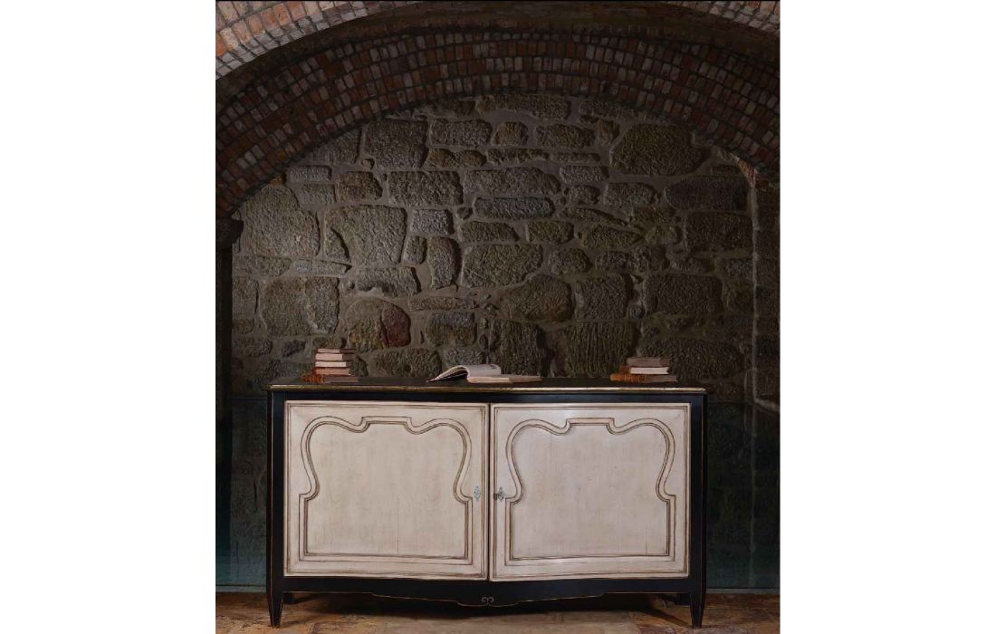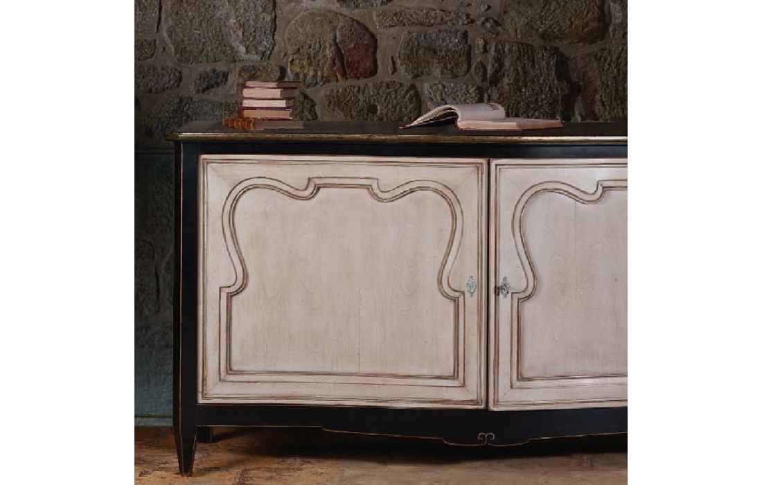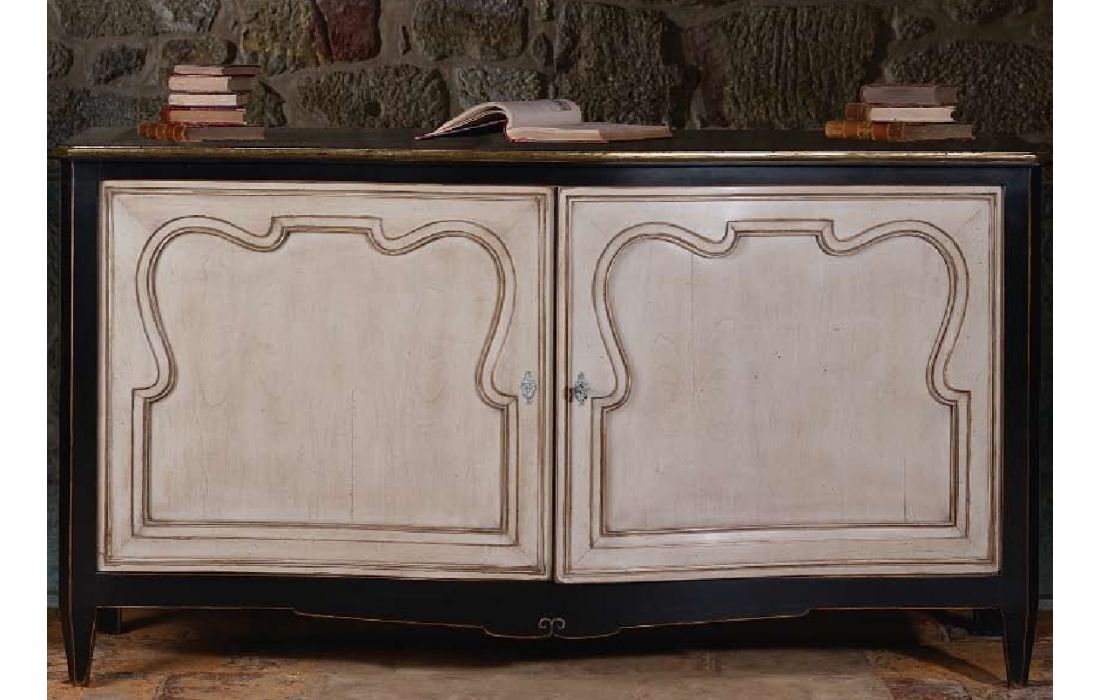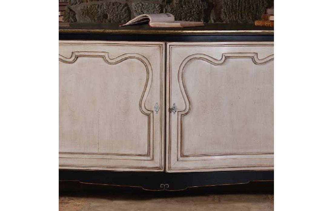 Sideboard with 2 doors, Provencal design and detail in gold leaf, with the possibility of several finishes.