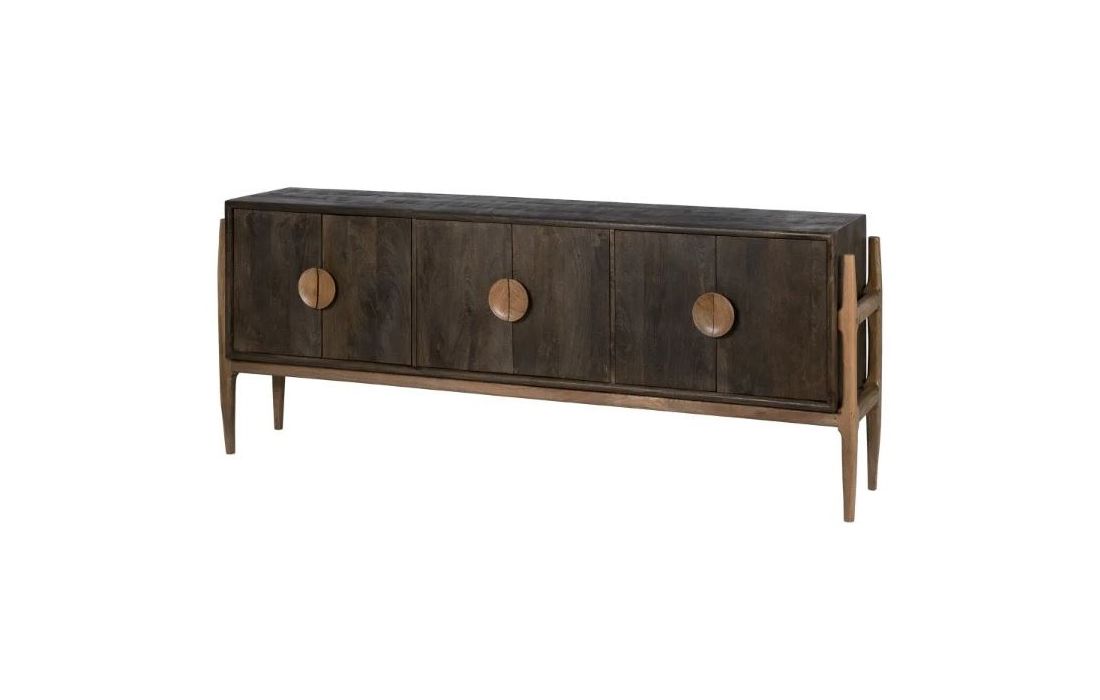 Mango wood chest of drawers in natural and brown with 6 doors.
