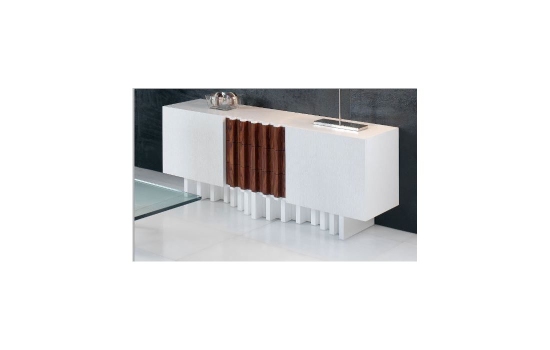 Sideboard with 2 doors and 3 drawers modern, can be finished in lacquered high-gloss, matt or wood veneer.
