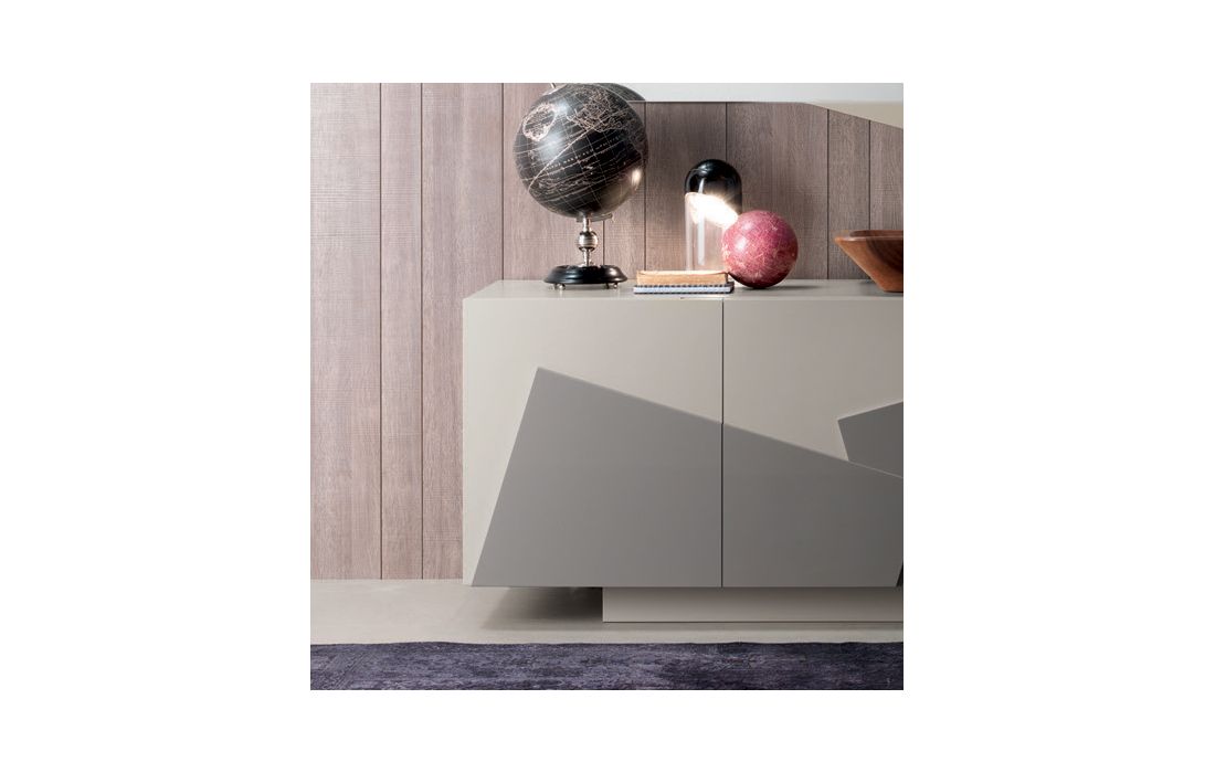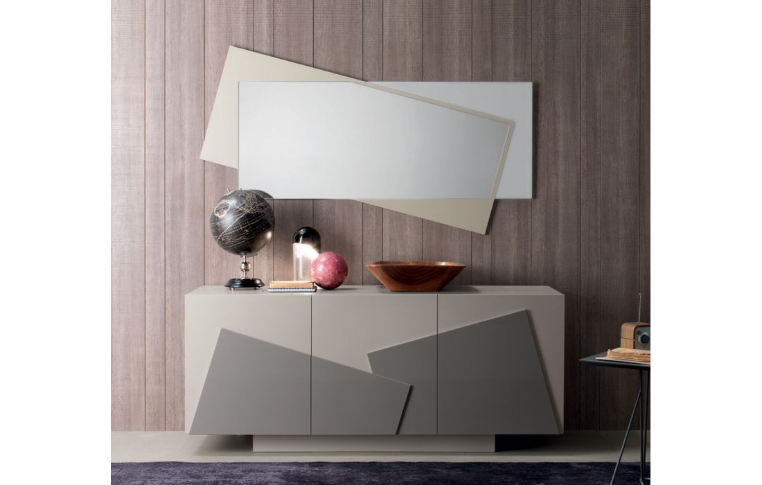 Sideboard 3 door with bright lacquered reliefs details and 3 shelves interior clear glass 6mm