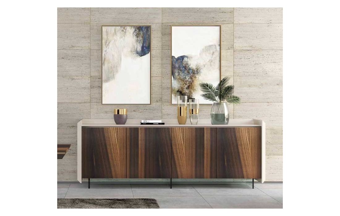 Sideboard w / structure in mdf and wood sheet, composed of 4 Doors and 2