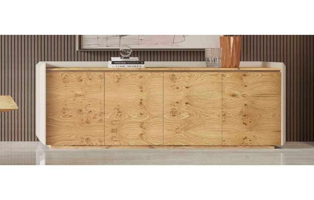 Sideboard w / structure in mdf and wood sheet, composed of 4 Doors and 2 Drawers.