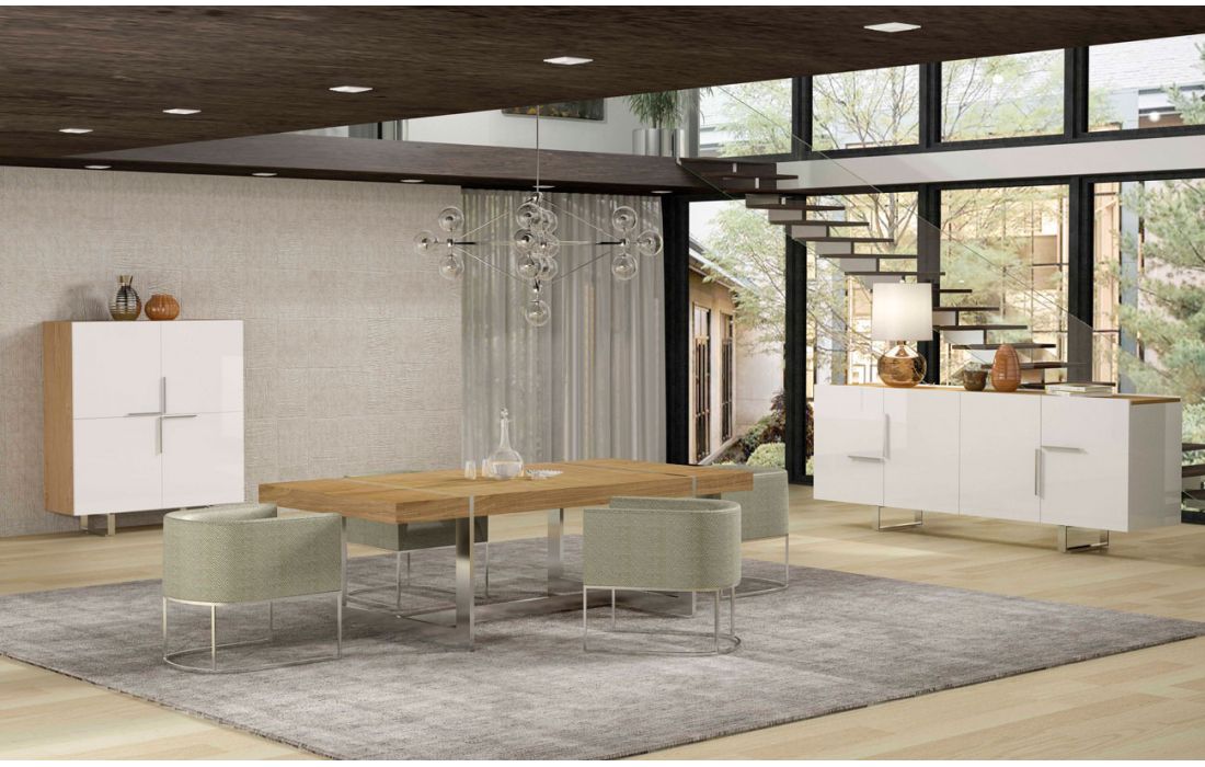 Sideboard w / structure in mdf and wood sheet, composed of 4 Doors and 2 drawers w/ metal feet.