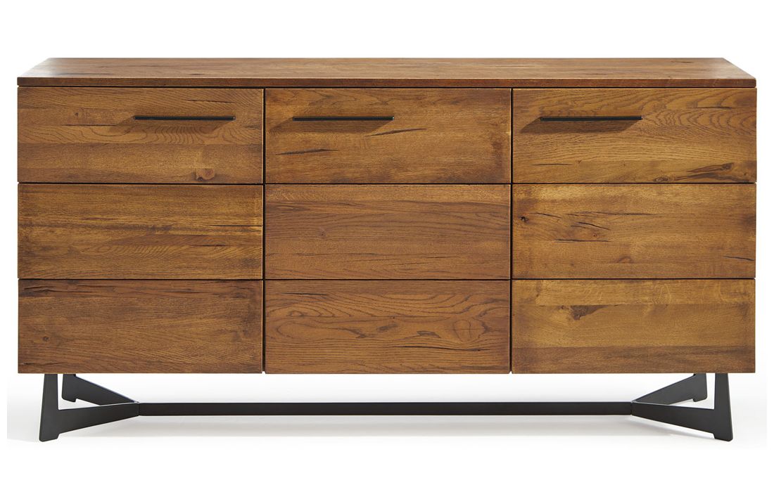 Solid oak wood sideboard with painted metal feet.
