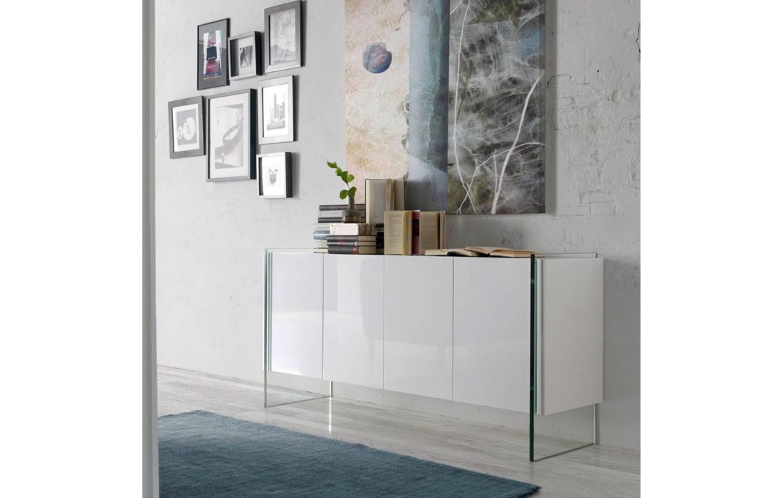 Modern design sideboard with MDF structure, glass legs and has ample storage space with 4 doorsRecipient :
