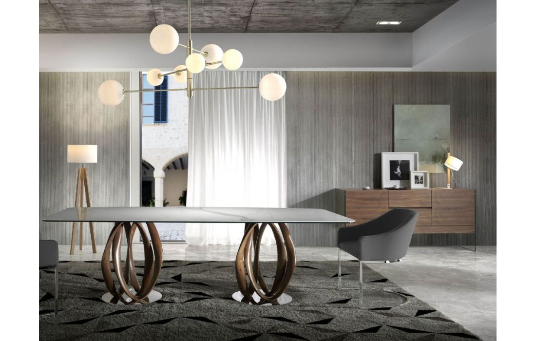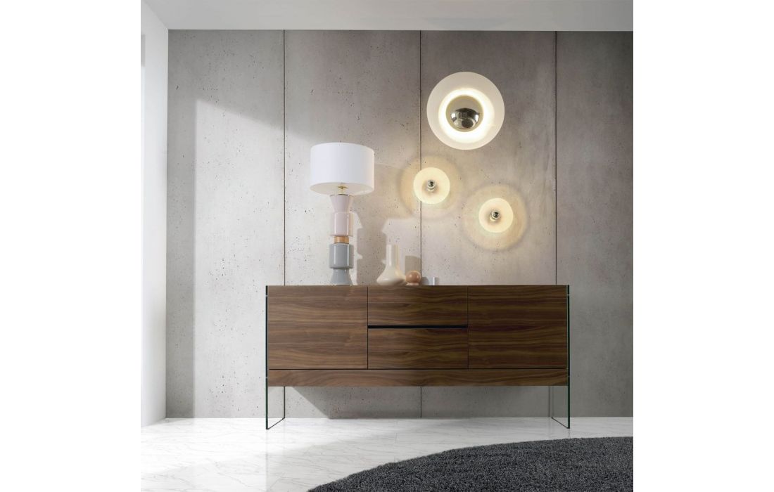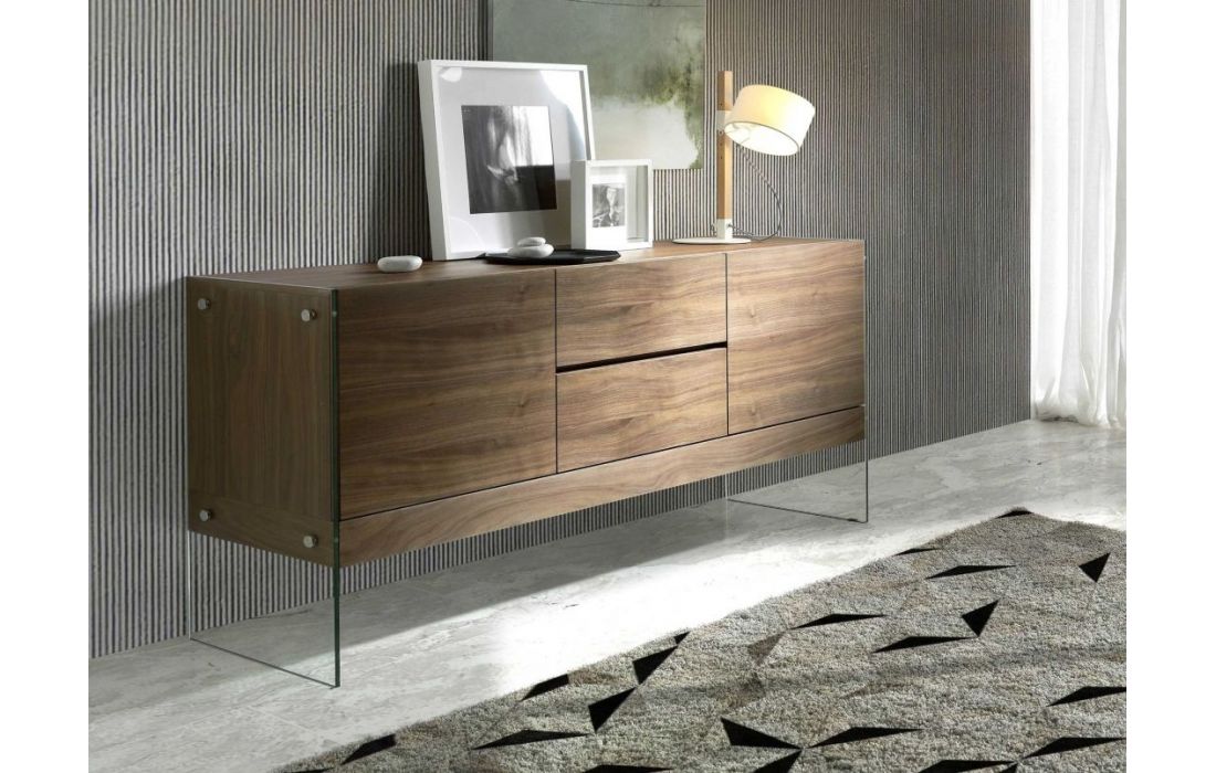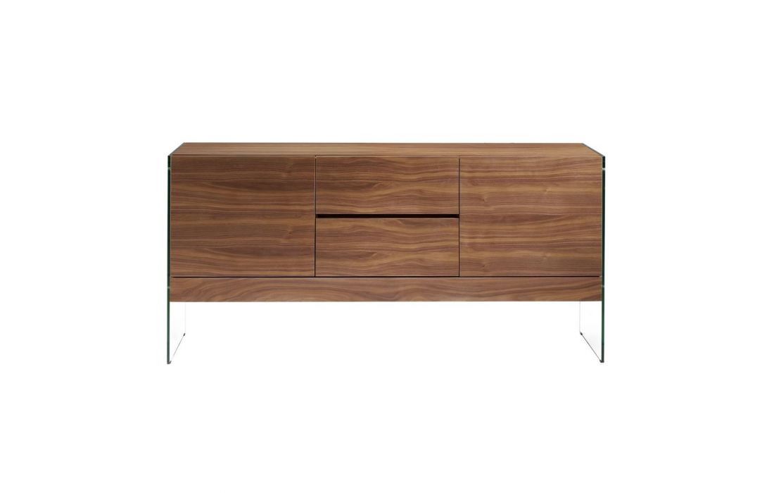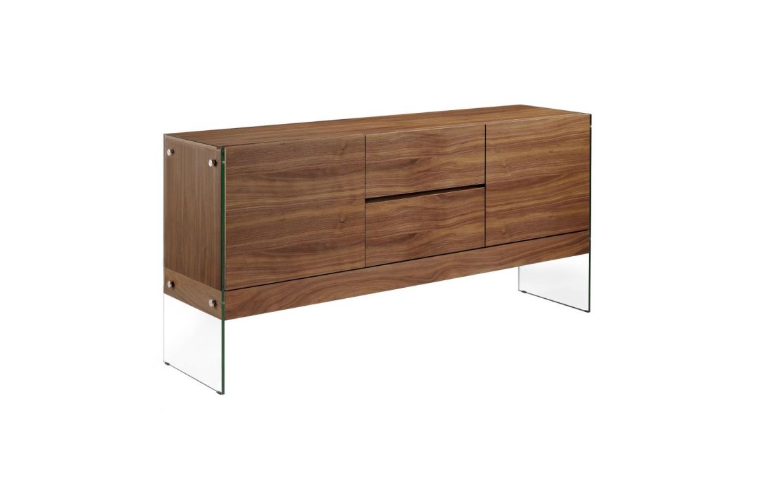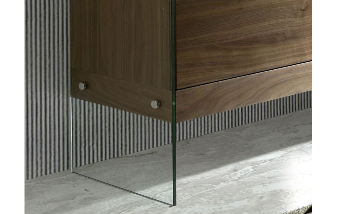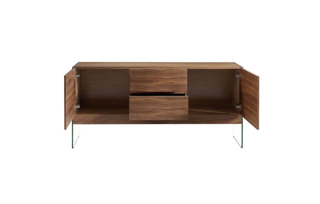 Modern design sideboard with natural walnut MDF structure and glass legs with 2 drawers and 2 doorsRecipient :