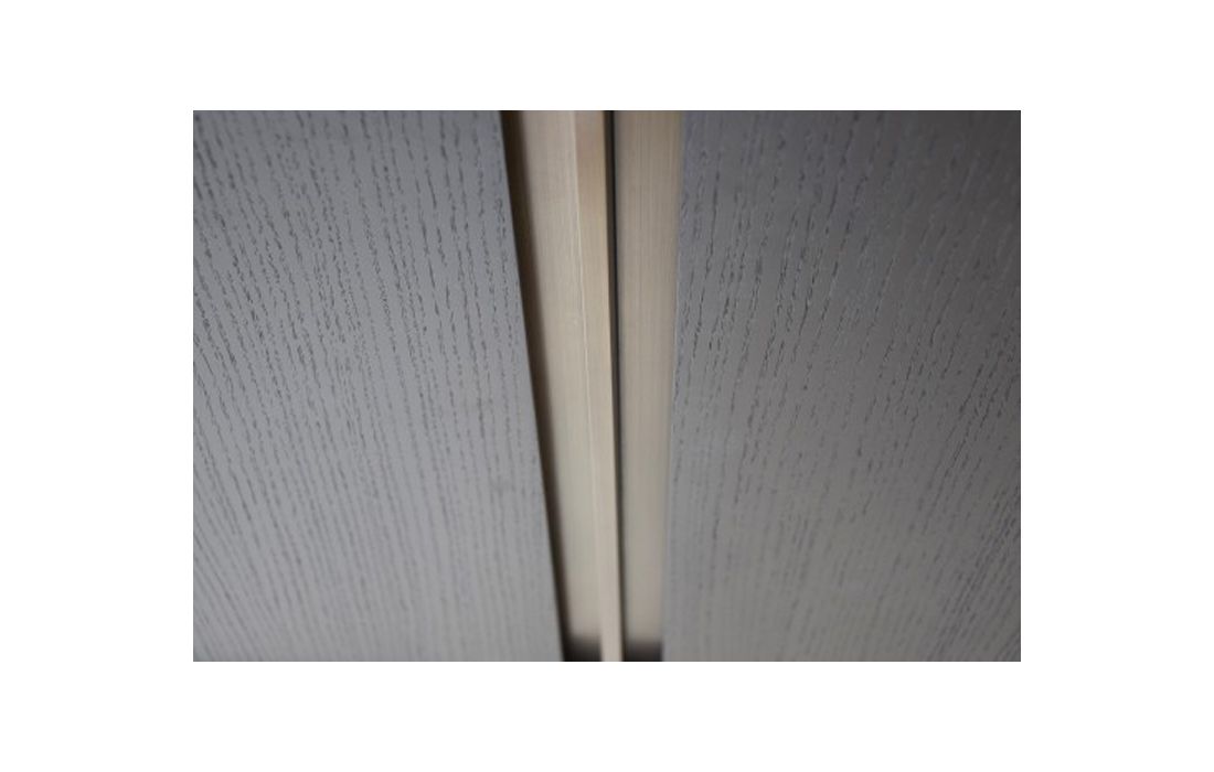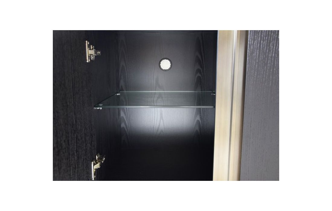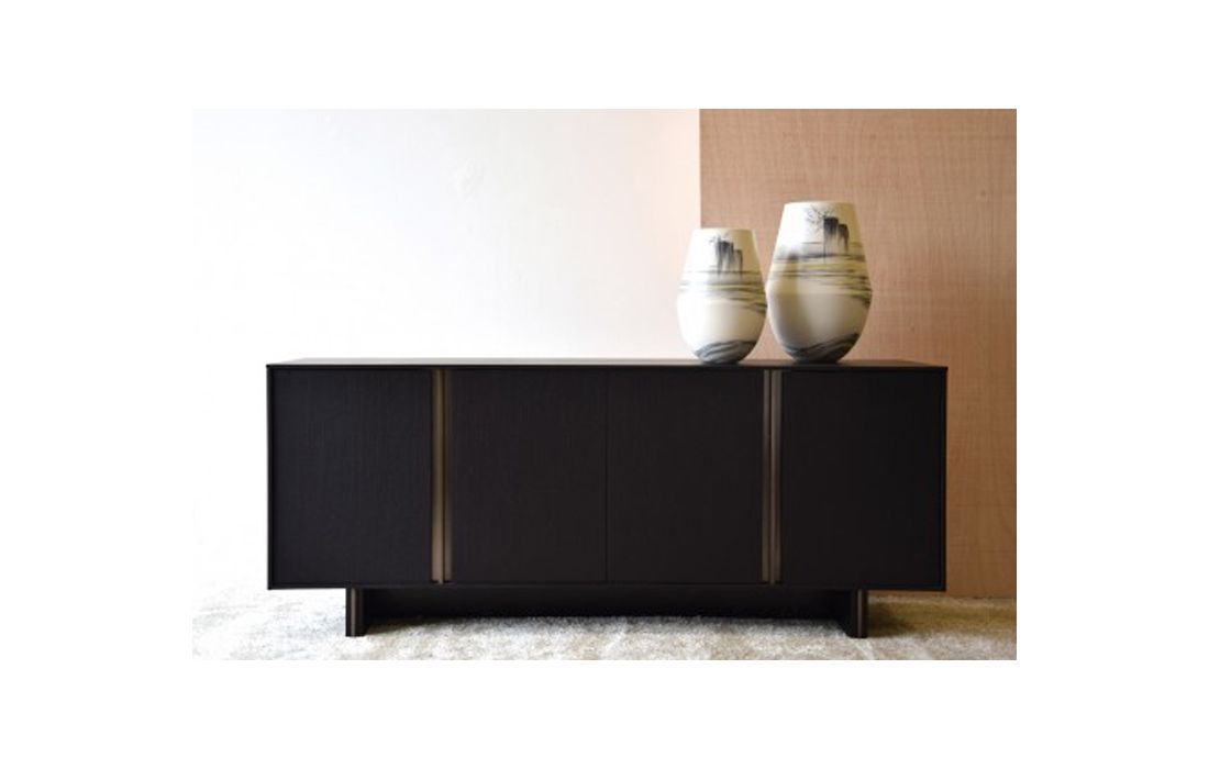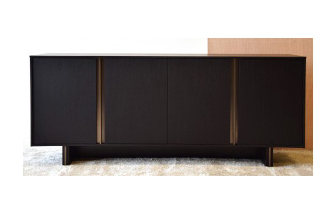 Sideboard with 4 doors in MDF veneer oak with black color finish and details in stainless steel brushed antique bronze.