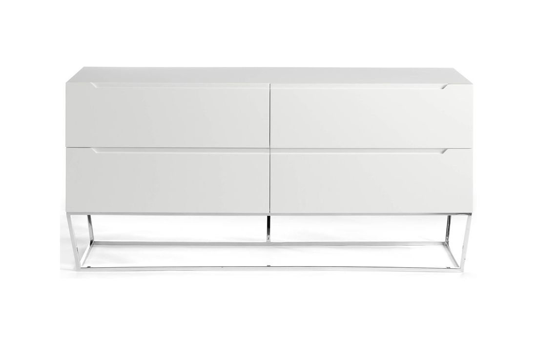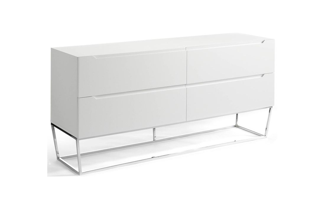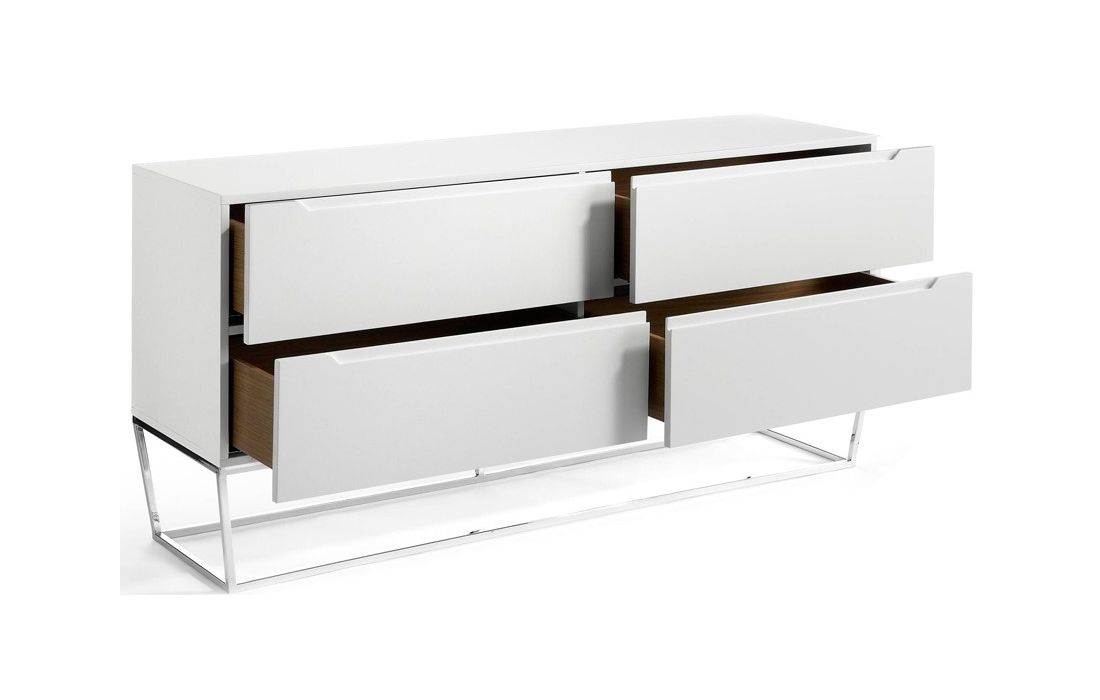 4 drawers lacquered MDF sideboard with chrome plated stainless steel feet