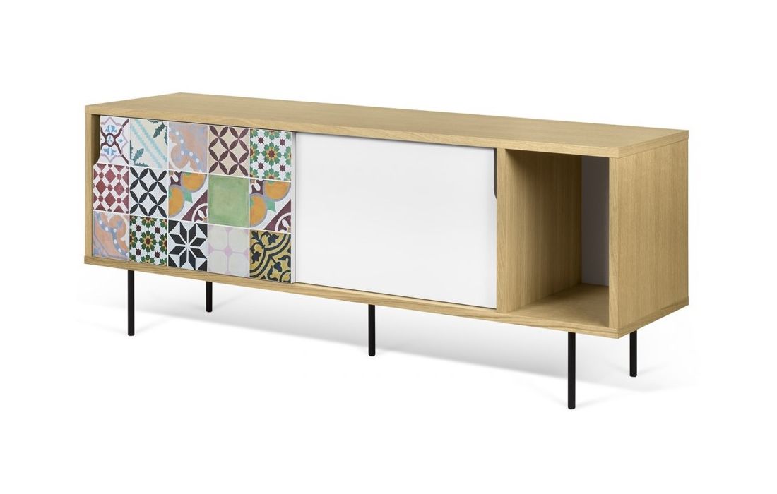 Sideboard with differentiating details, such as the geometric pattern on the door.