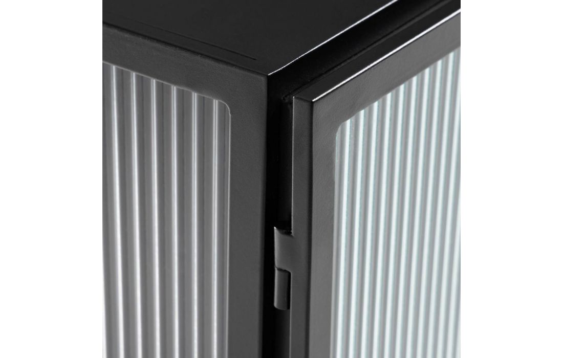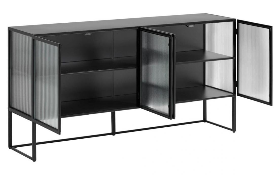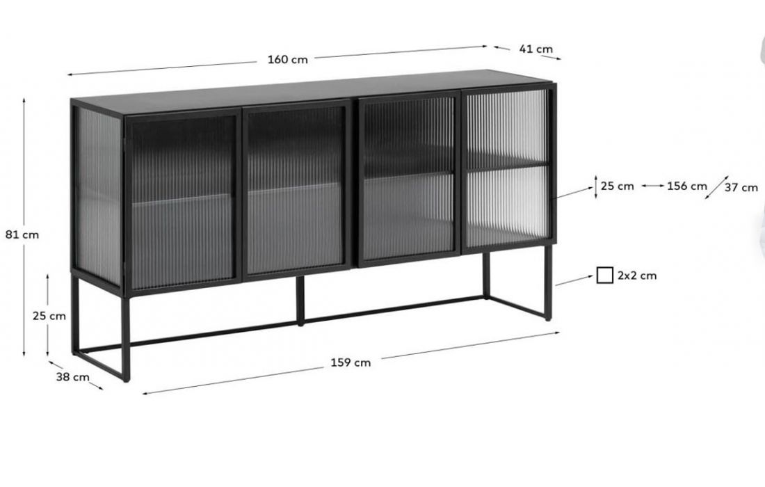 Sideboard with metal structure, sides and glass front.