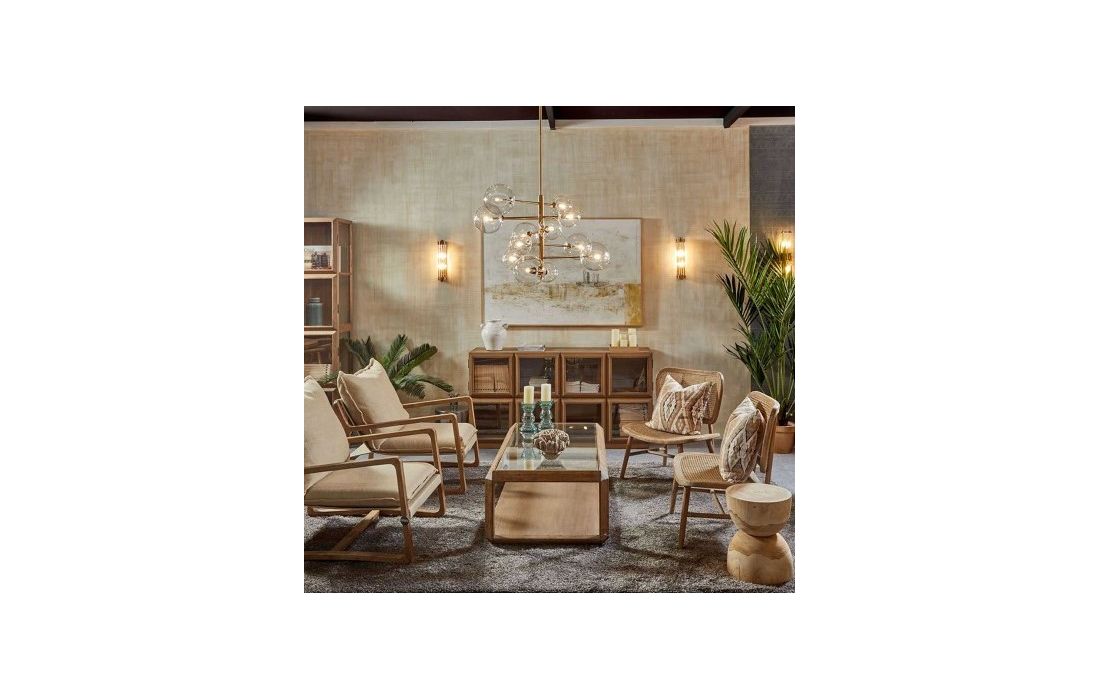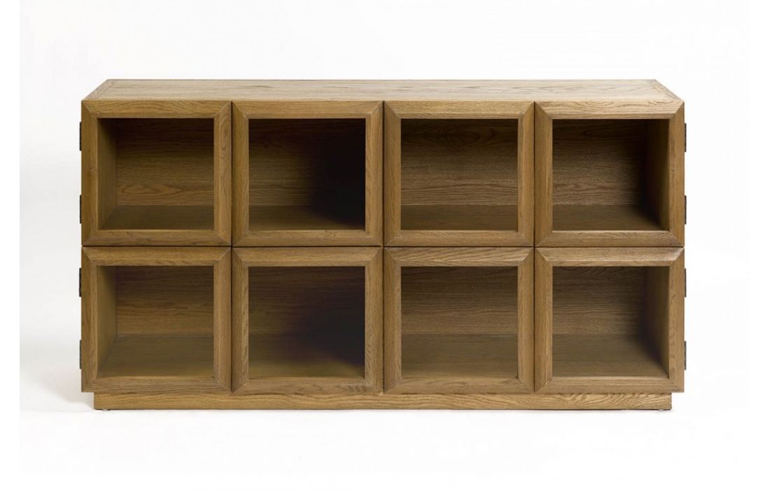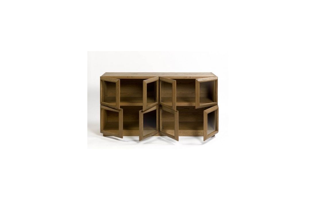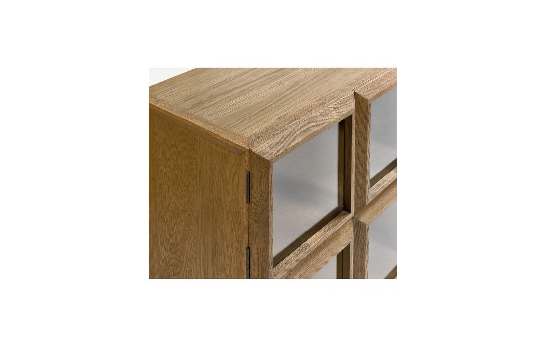 Sideboard in oak wood, with wooden doors and tempered glass.