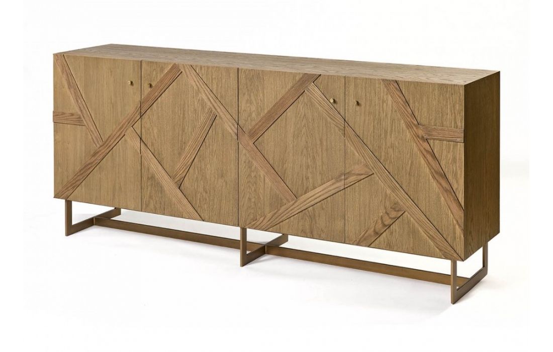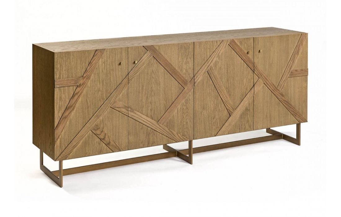 Sideboard in oak in natural color and metal structure in aged gold.