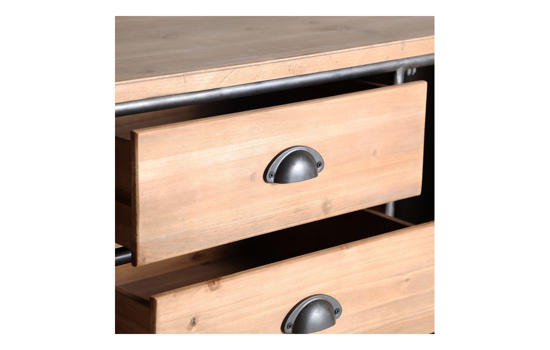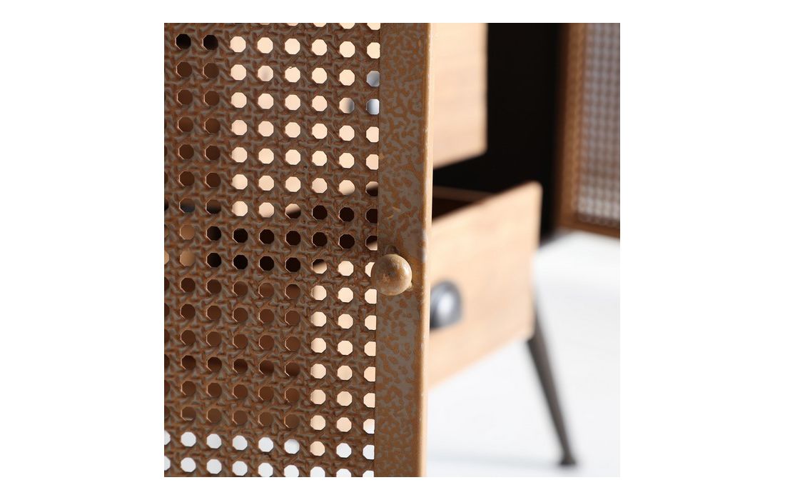 Sideboard in spruce wood and iron, has 3 drawers and a door with a metal grille finish.