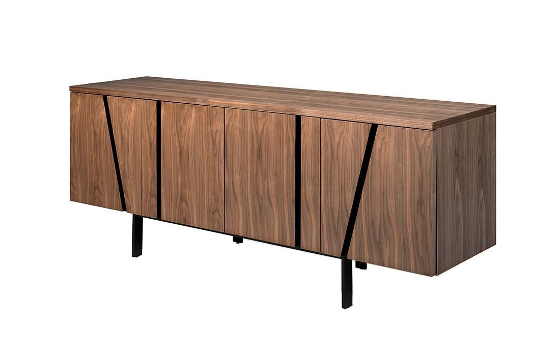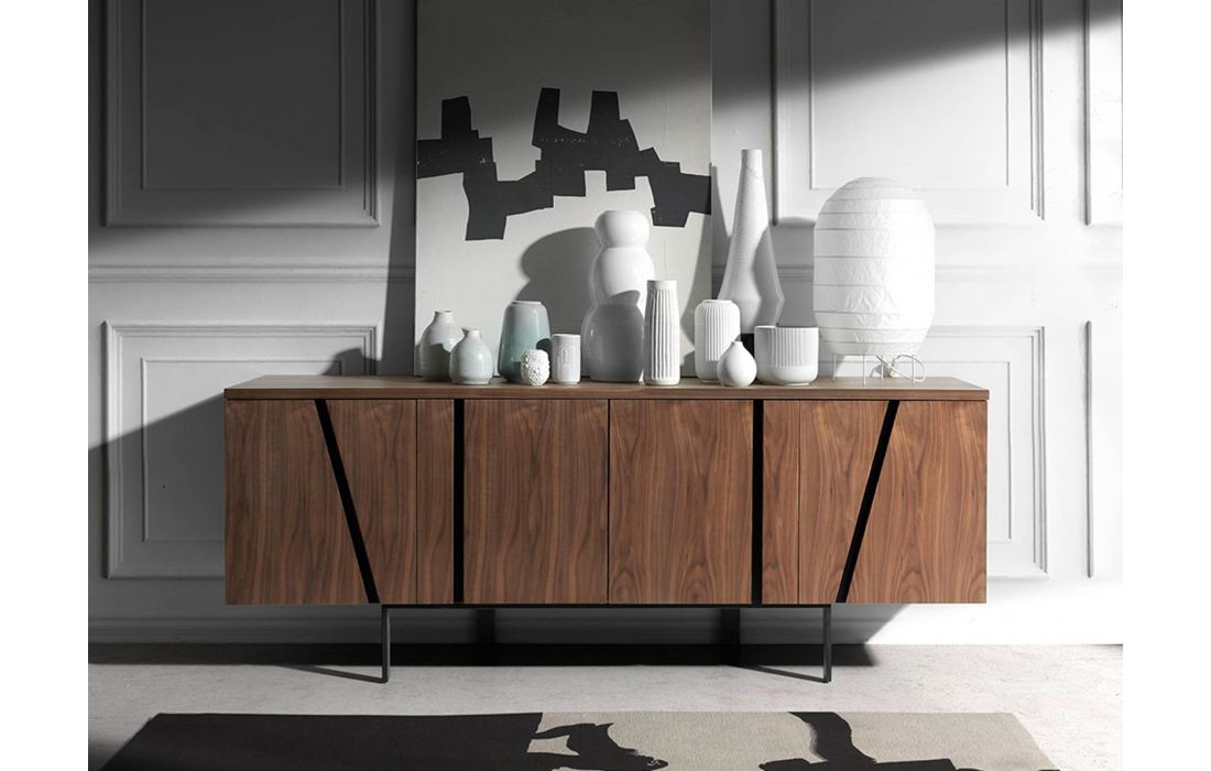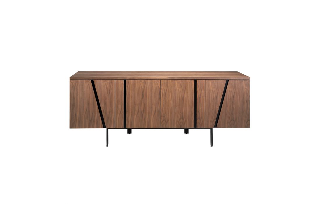 Sideboard in ash wood veneered in American walnut with details and feet in black epoxy painted steel, with four doors with interior shelvesRecipient :