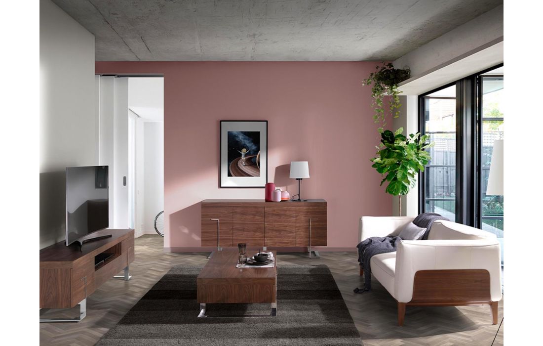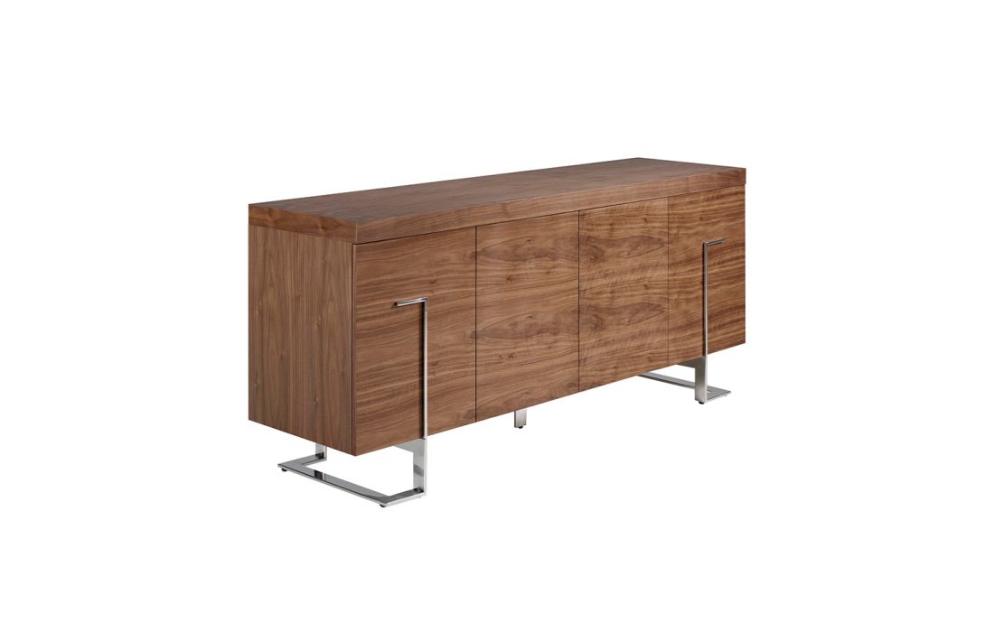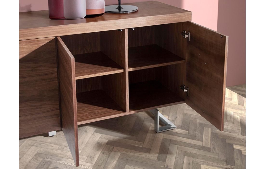 Sideboard in natural walnut veneer with two push-pull opening and closing cabinets and feet in chrome steelRecipient :