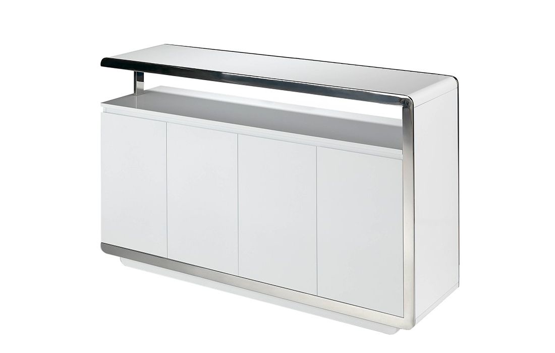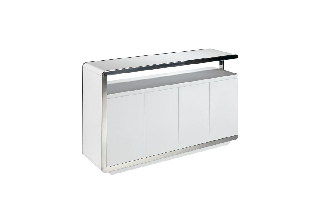 Modern design sideboard with white MDF structure and original stainless steel base and its chromed stainless steel detail gives the ideal touch of style with 4 doorsRecipient :