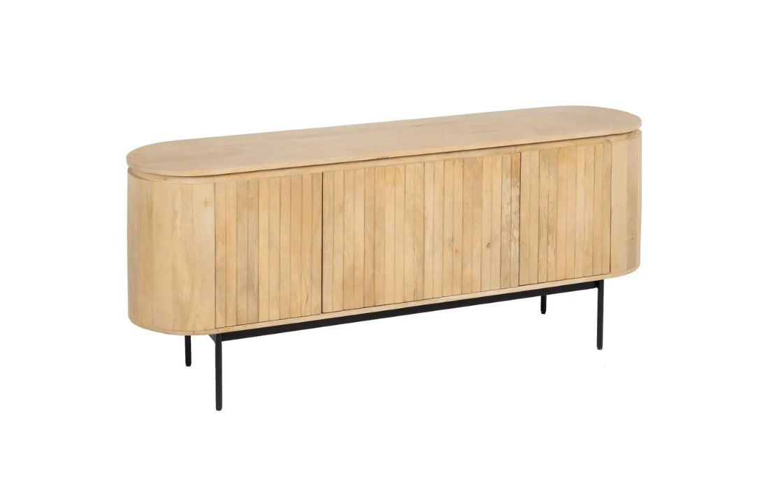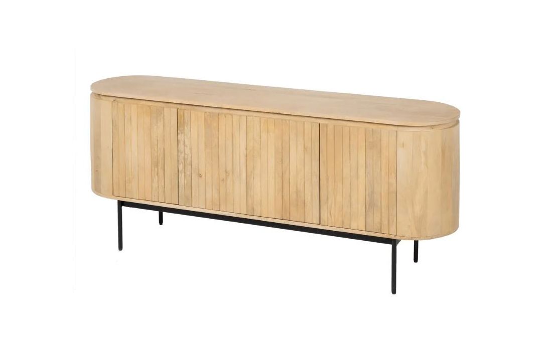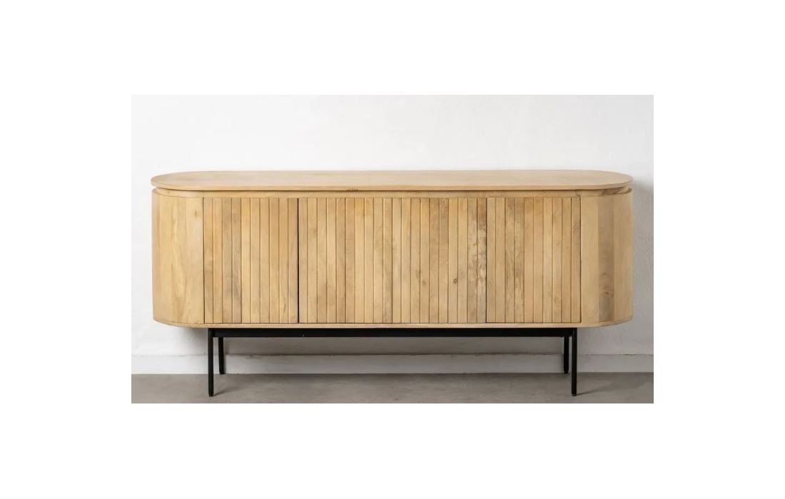 Sideboard with 4 doors in natural mango wood with black metal feet